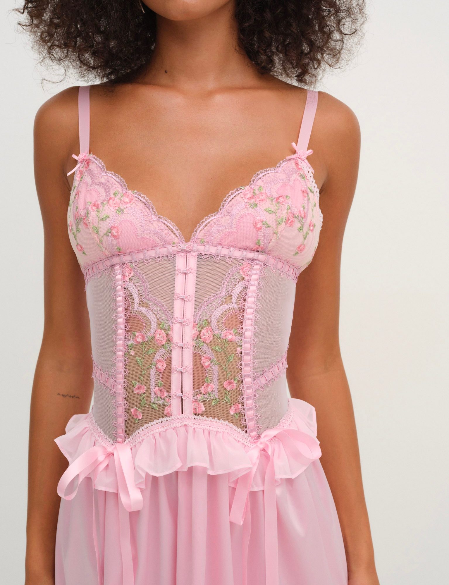 ily embroidered slip dress pink