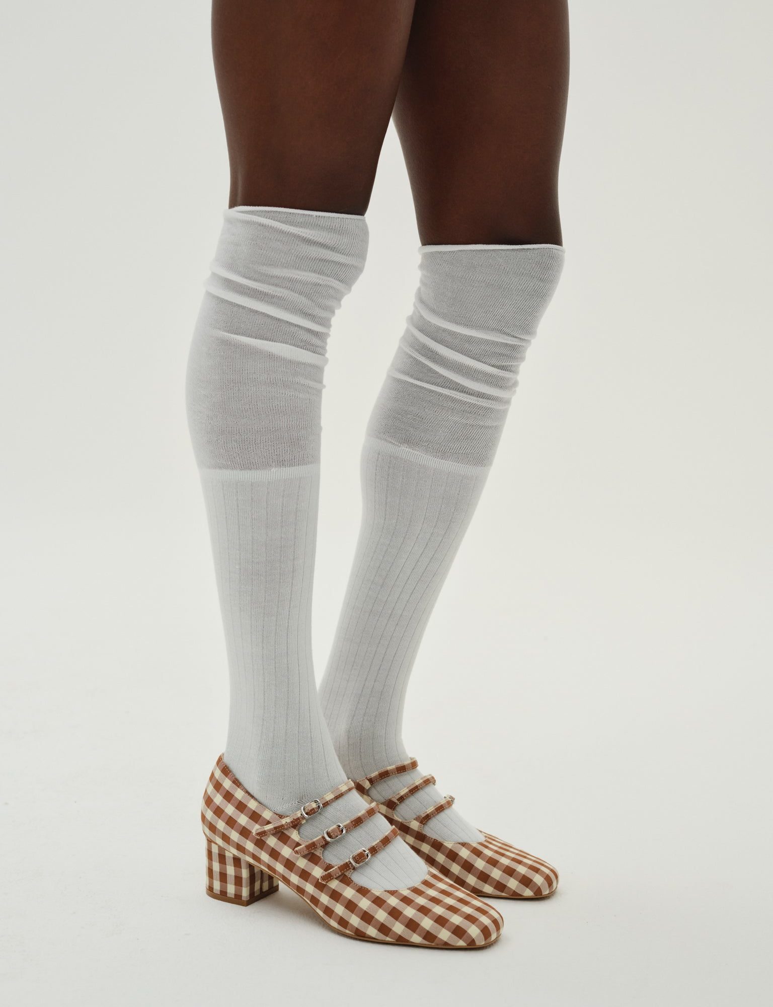 slouchy over knee socks white
