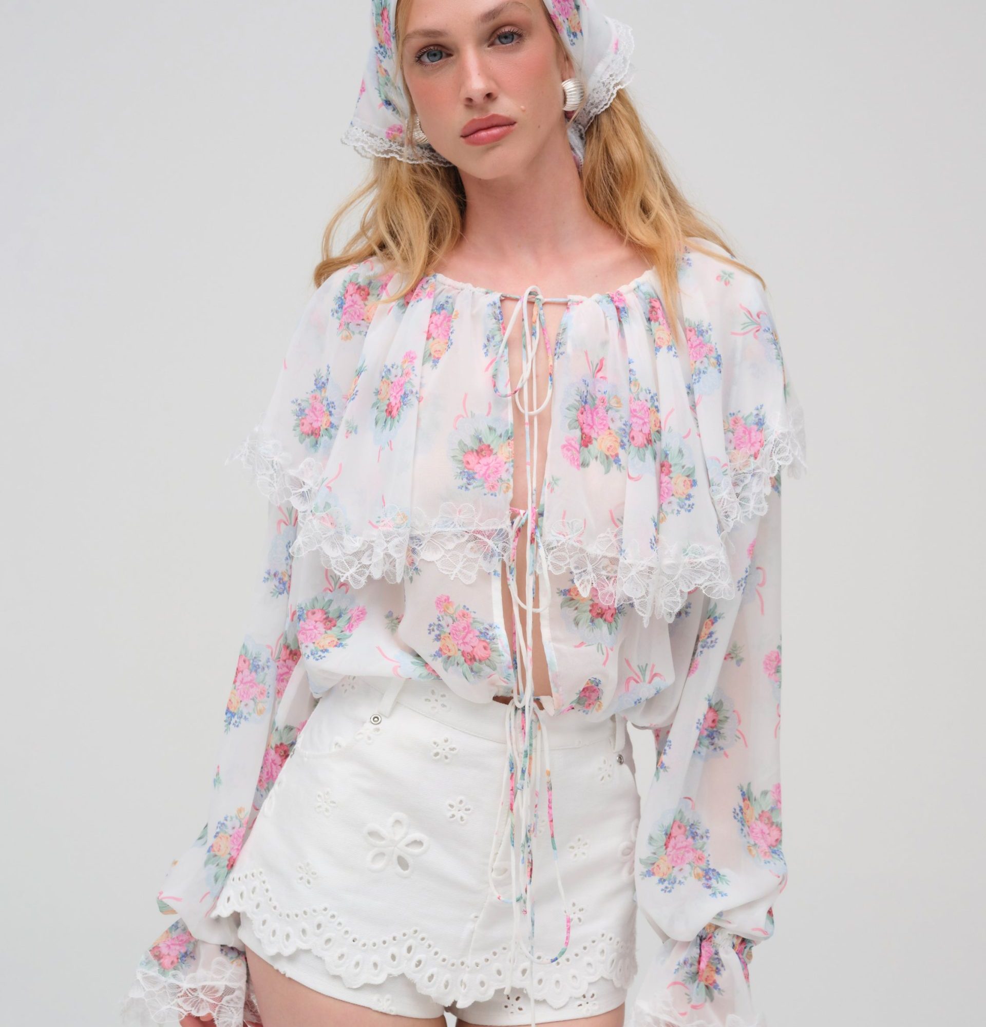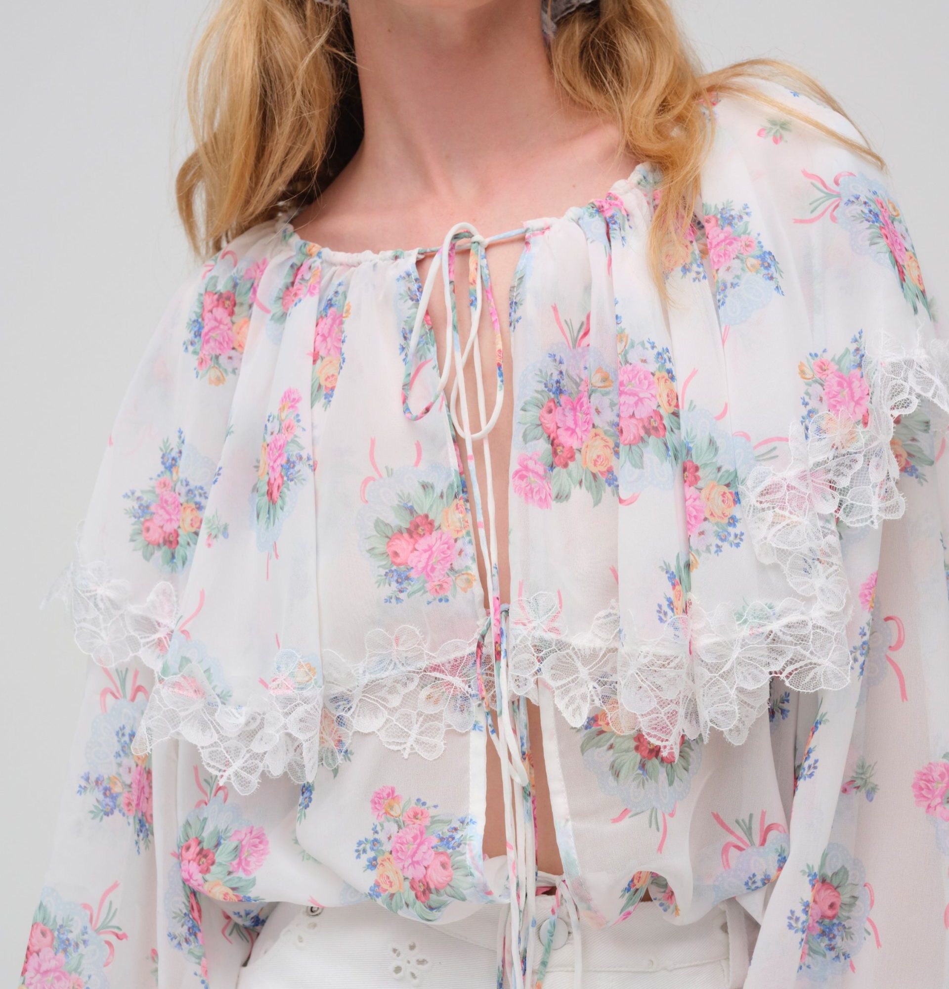 doily bouquet long sleeve top white