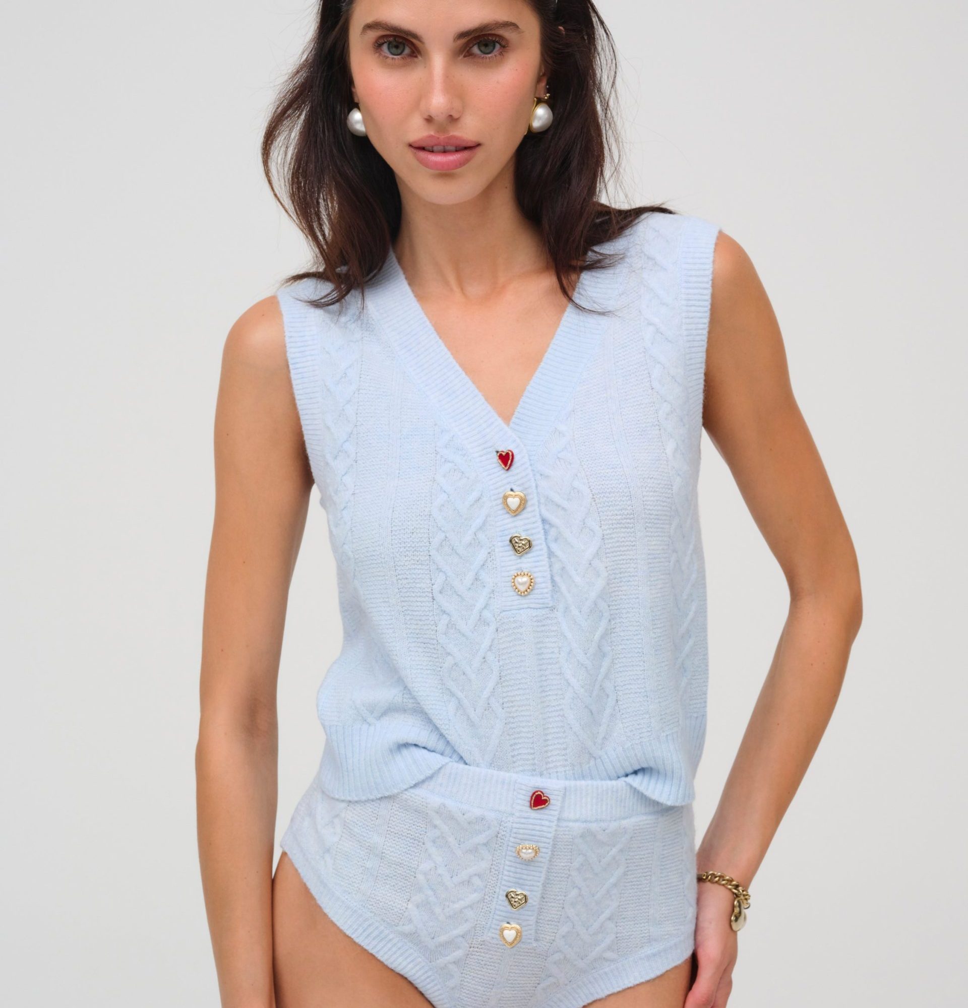 cupid cable knit vest blue