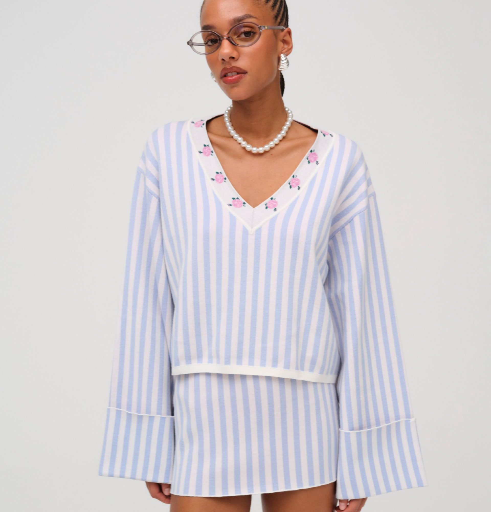 edie jacquard knit sweater blue