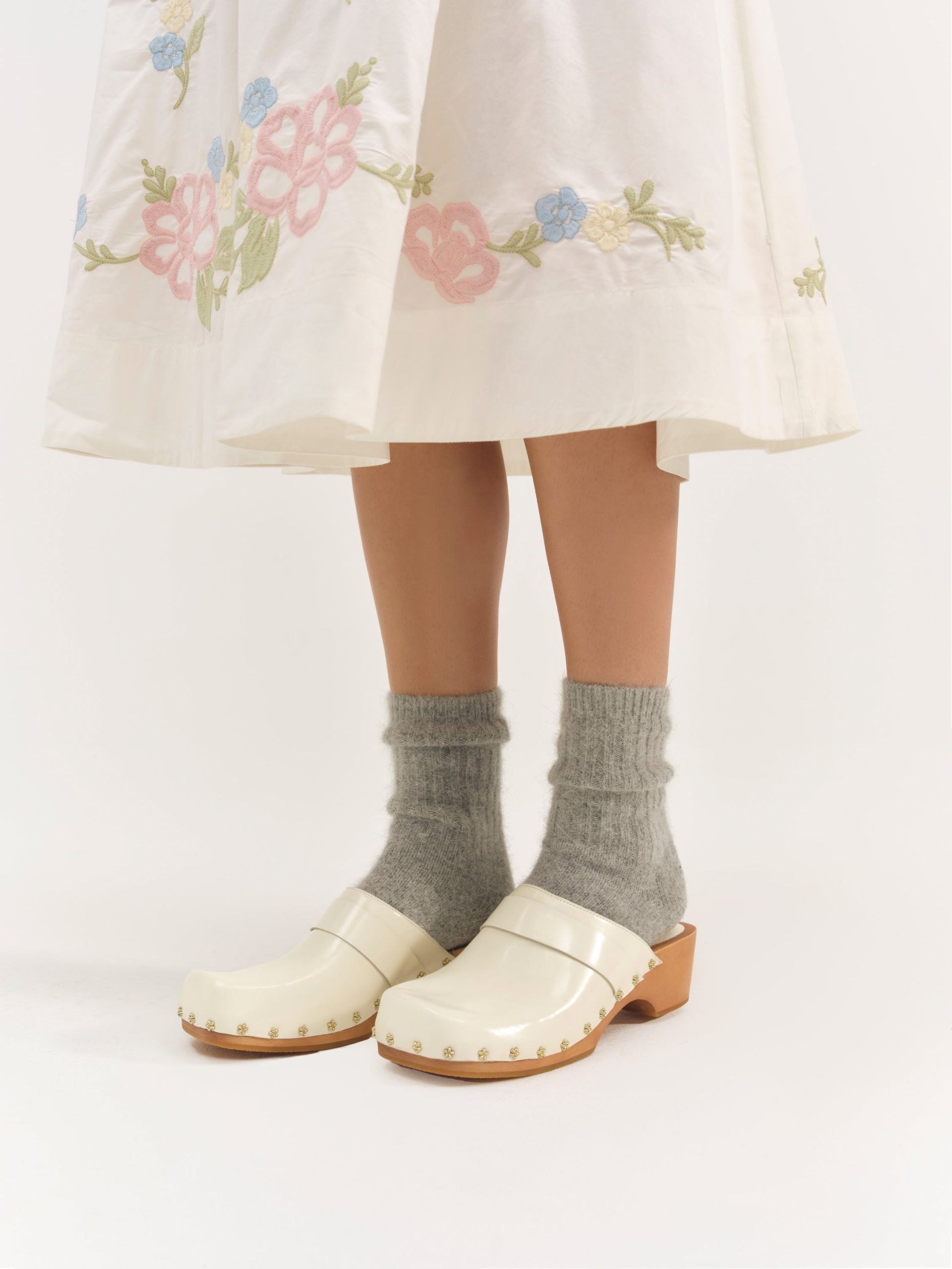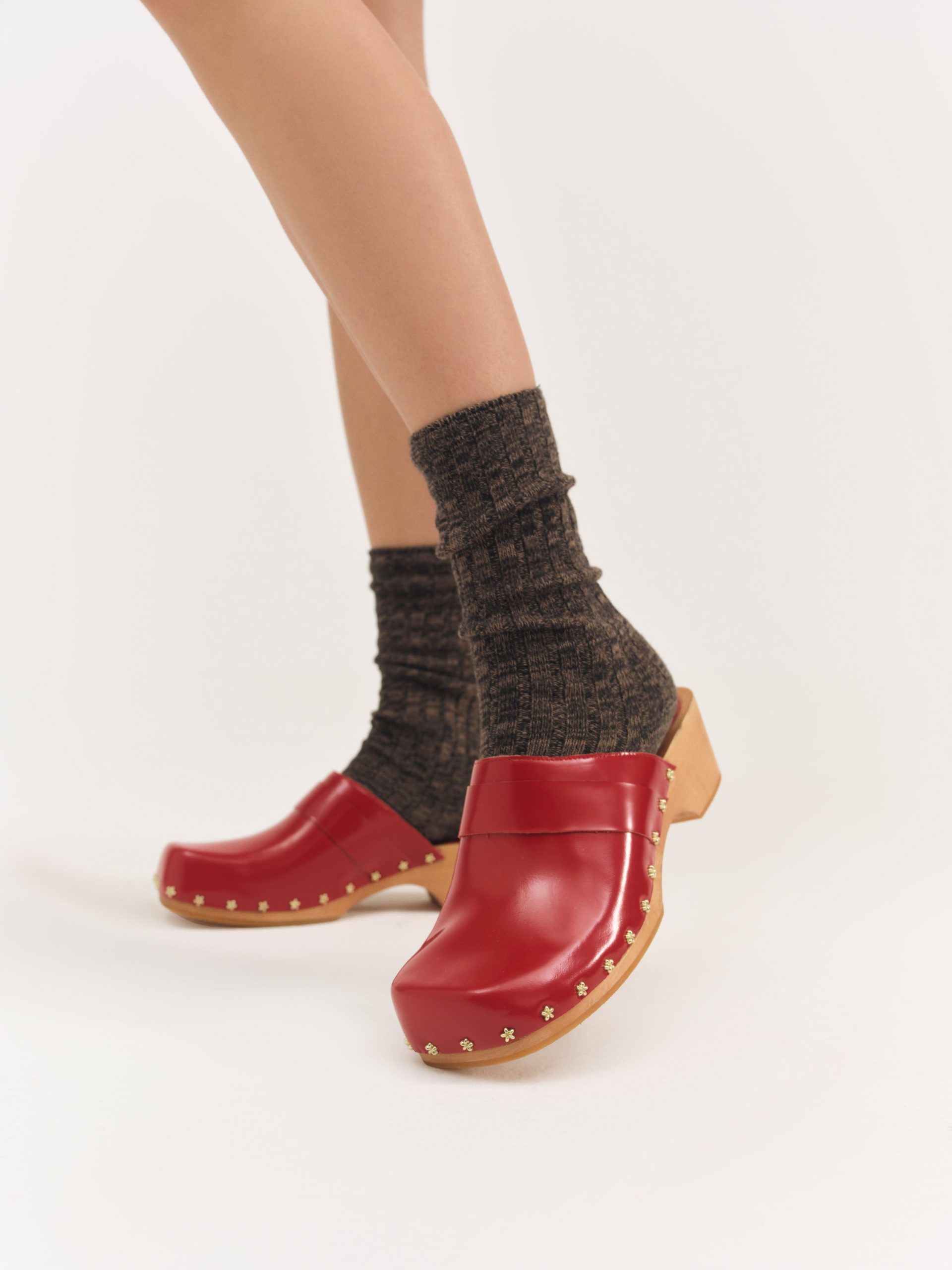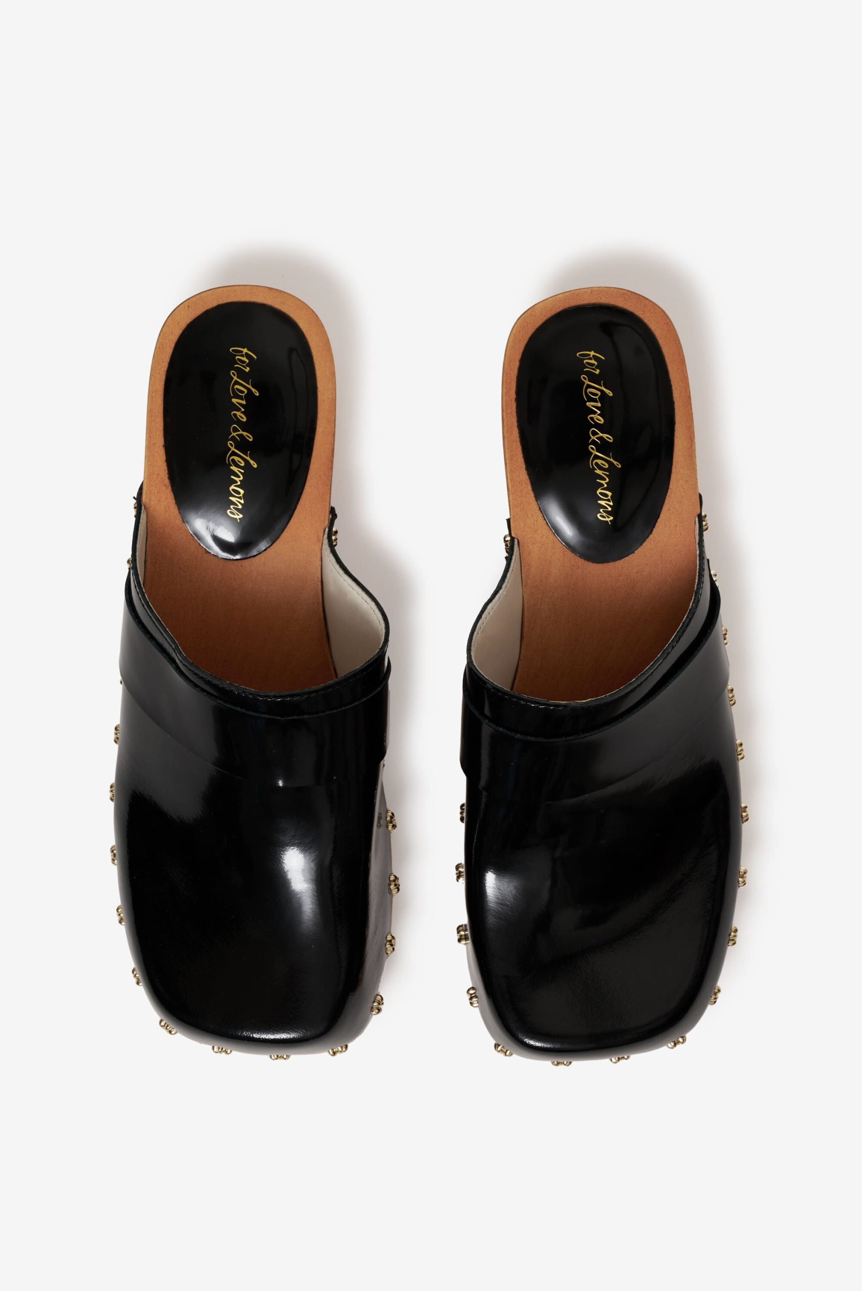 Become the vintage Muse with the Adahlia heeled clogs. Crafted in a classic clog silhouette, these black mule heels feature a slight platform and contrast block heel.