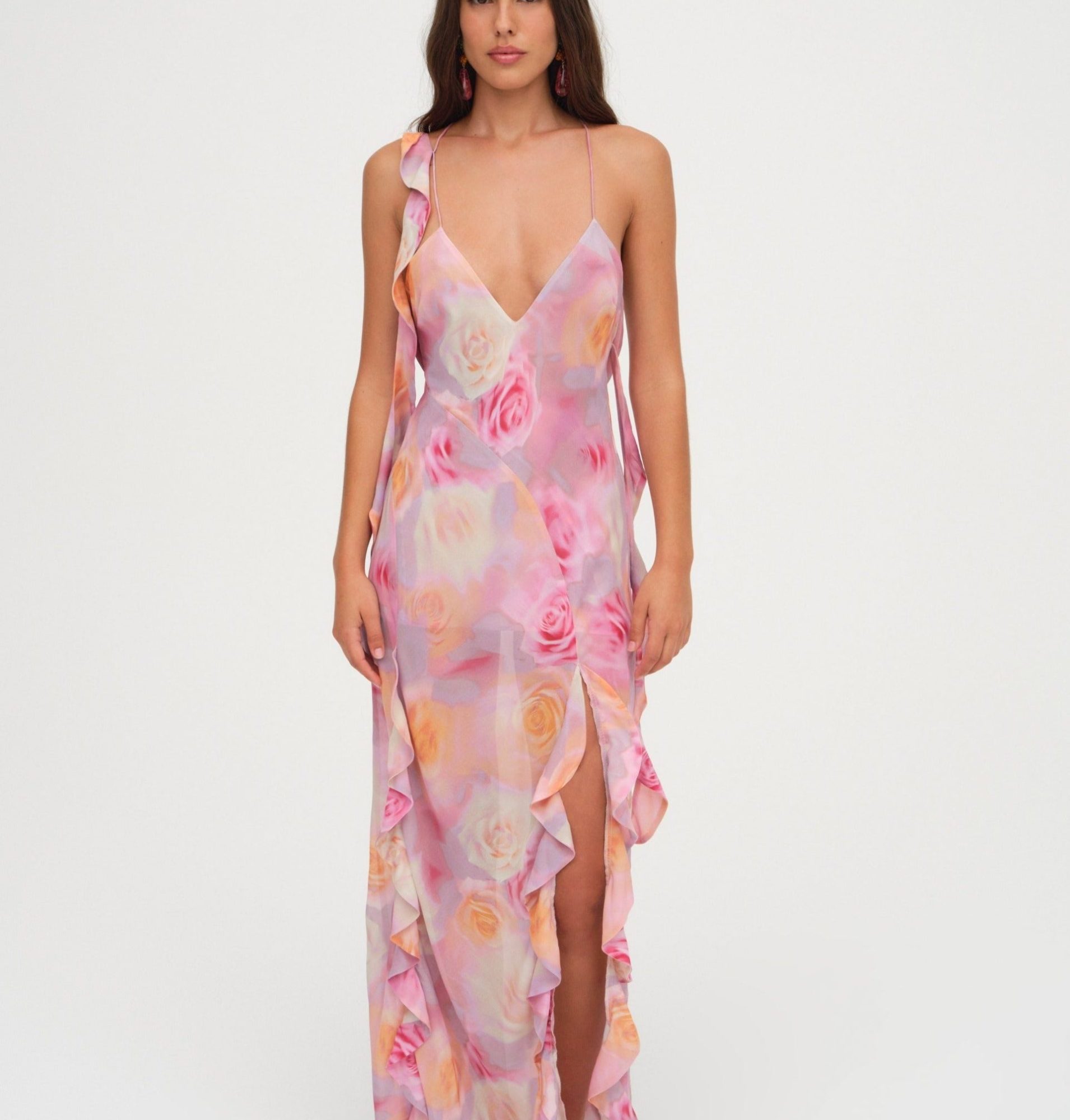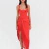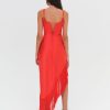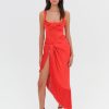 FOR LOVE & LEMONS KEEPSAKES: The Anisa red midi dress takes inspiration from vintage silhouettes and dusk-till-dawn glamor of the holiday soirées. This captivating sequin dress features a draped cowl at the neckline, draped detailing at the skirt, an sultra-sexy thigh-high slit, and sequined fringe detailing at the hem.