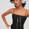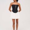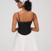 Designed for the minimalist muse–the Annabella drop-waist mini dress is crafted in a two-toned black and white fabrication and adorned with a dainty lace trim and gingham ribbon at the center-front. This corset mini dress features figure-flattering boning throughout the bodice and a full gathered skirt with on-seam pockets for an ultra-feminine silhouette.