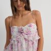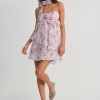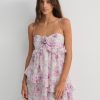 Celebrate the spirit of spring in the Ariana floral mini dress—a short dress crafted in a charming floral printed chiffon, featuring a ruched bodice, and a delicate fabric rosette at the center-front. This ultra-romantic short dress is perfected with a matching neck scarf with rosette, making it the perfect event or wedding guest dress.