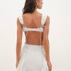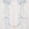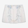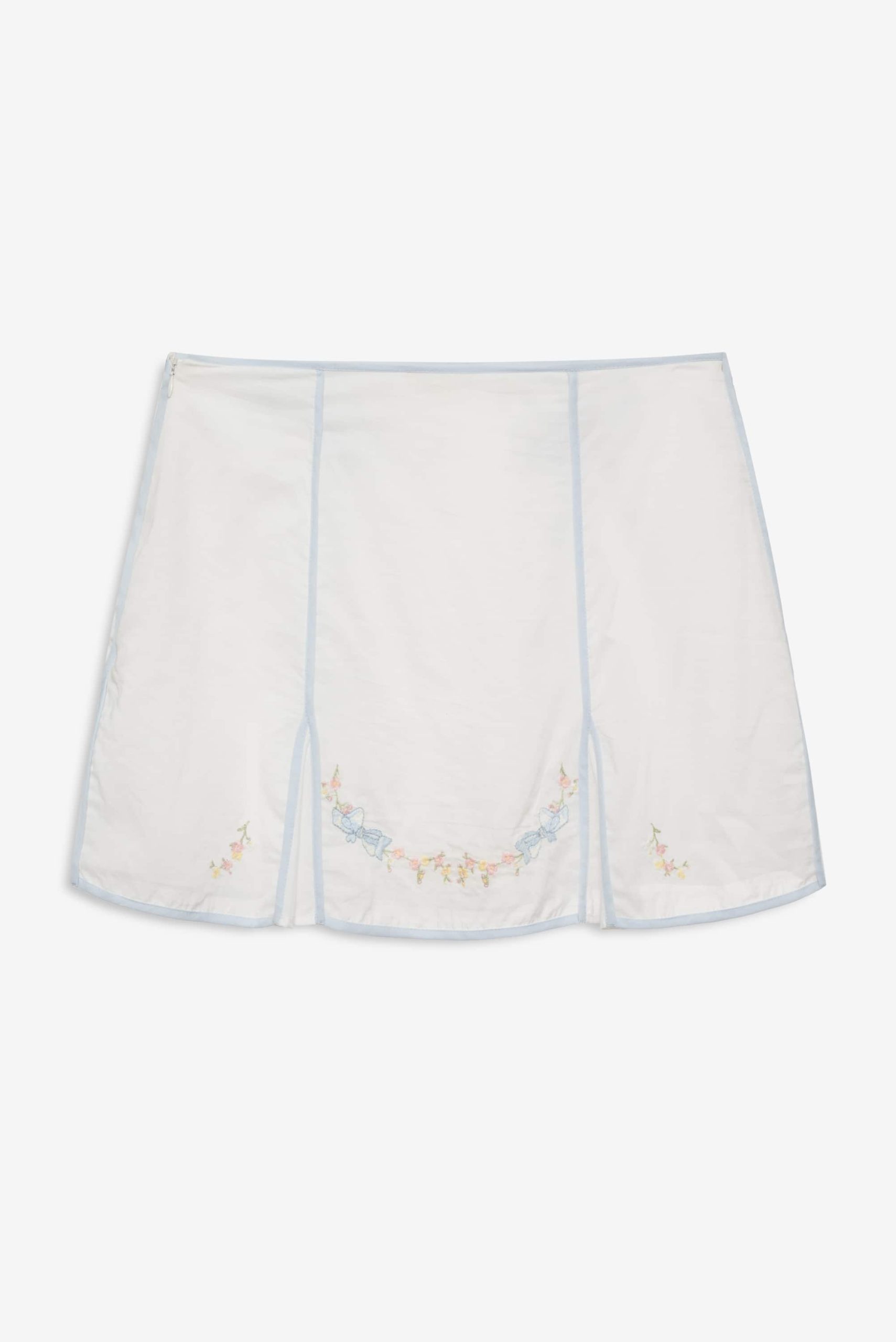 Cook up your summer of love in the Baby Bows white mini skirt. Crafted in a pastel floral and bow embroidered fabric, this cotton mini skirt spotlights godet seams and a center-front bow.