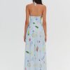 Find yourself daydreaming of vacation? So did artist Keely Murphy, who hand-drew the summer-infused Positano print on the Carla multicolor strapless maxi dress. Cut to a column silhouette, this bandeau dress has a figure-skimming, ultra-flattering fit and is the perfect piece for golden hour cocktails.