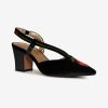 Embrace opulence with the Chantilly black velvet heel—a point toe heel with a vintage-inspired embroidered rose with a stem that extends around the ankle strap.