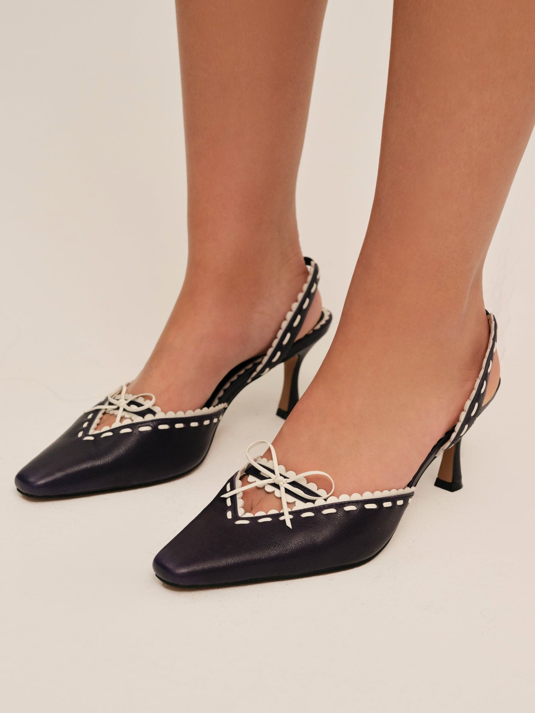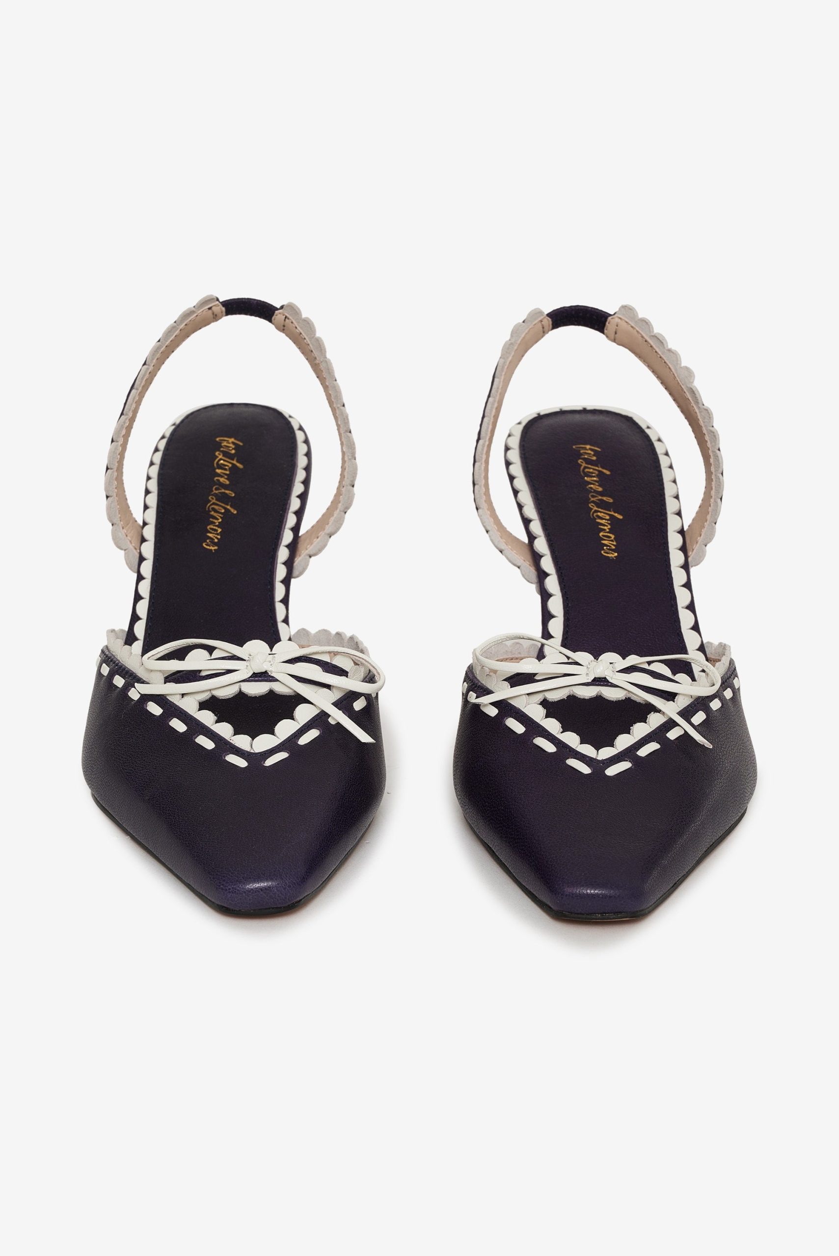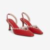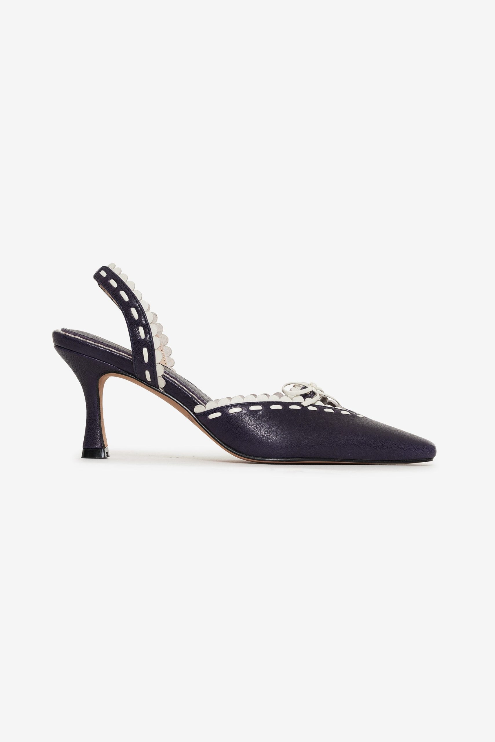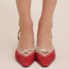 Make every step sweeter with the Charlie red heels–a pointed toe kitten heel adorned with a white scallop trim and center-front bow.Upper leather materialLined in PUHeel height: 70mm