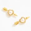For Love & Lemons x Frasier Sterling: Cupid-approved–The Cupid Heart Stud. Plated in 14k gold, these nostalgic heart and arrow stud earrings are adorned with red glass and cubic zirconia details throughout.