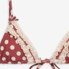 Inspired by vintage swimwear–the Dolly Dot red triangle bikini top is crafted in a retro polka dot print and adorned with ruffled crochet lace trim plus bow appliqués. This classic bikini top features adjustable drawstring shoulder straps for the easiest fit. Pair it with the Gingham Bikini Bottom for the full bikini set.