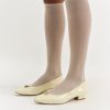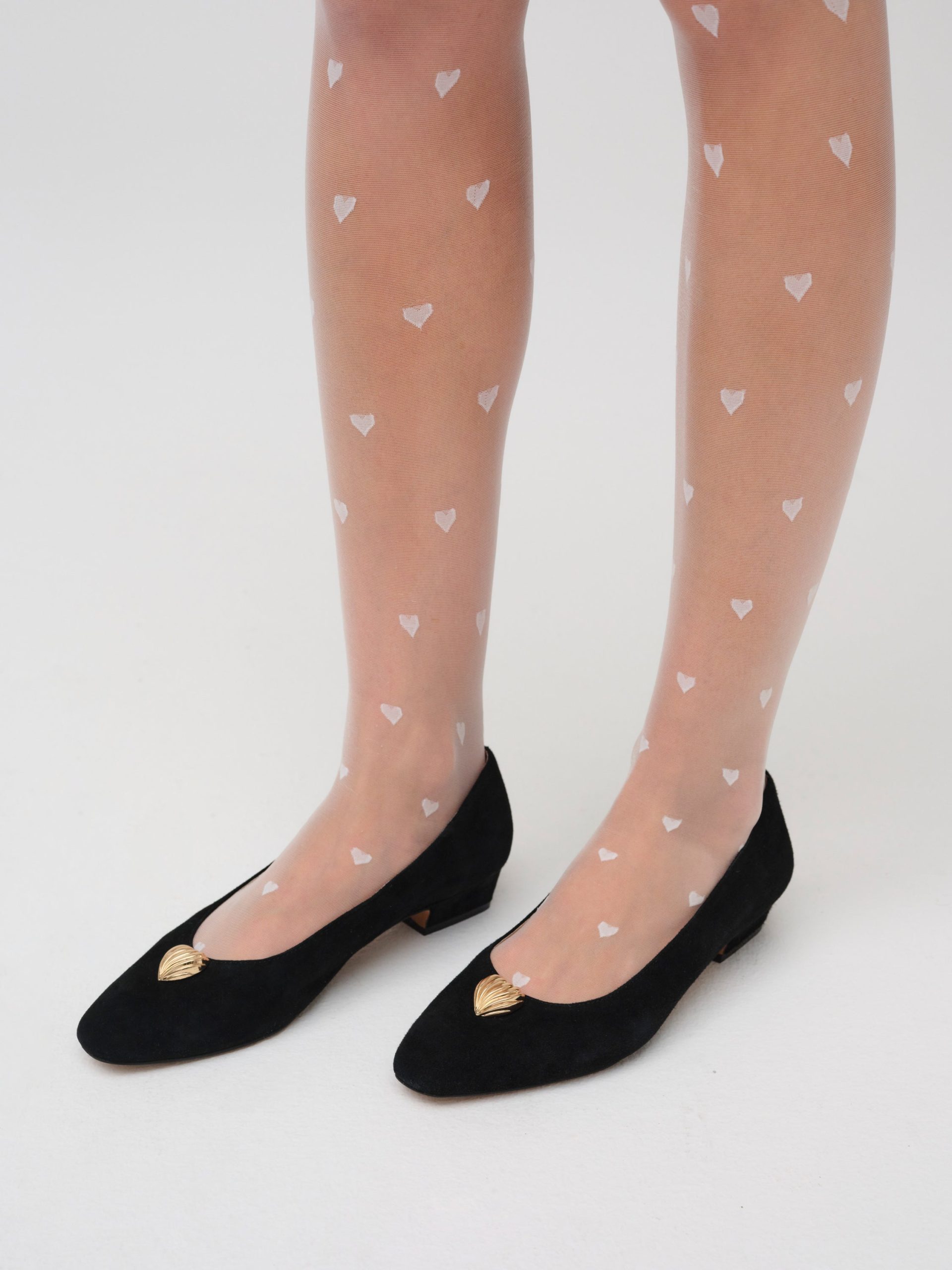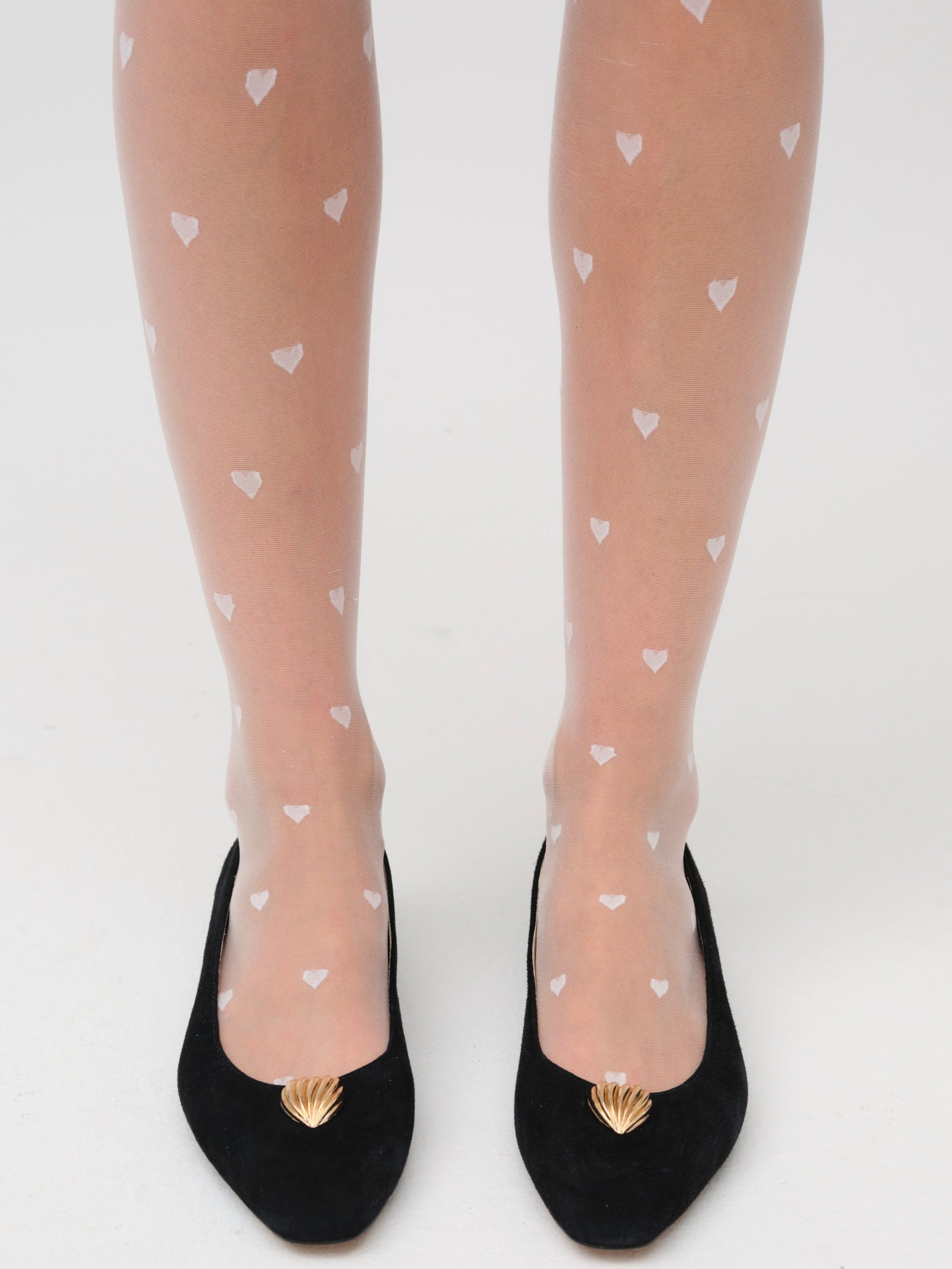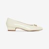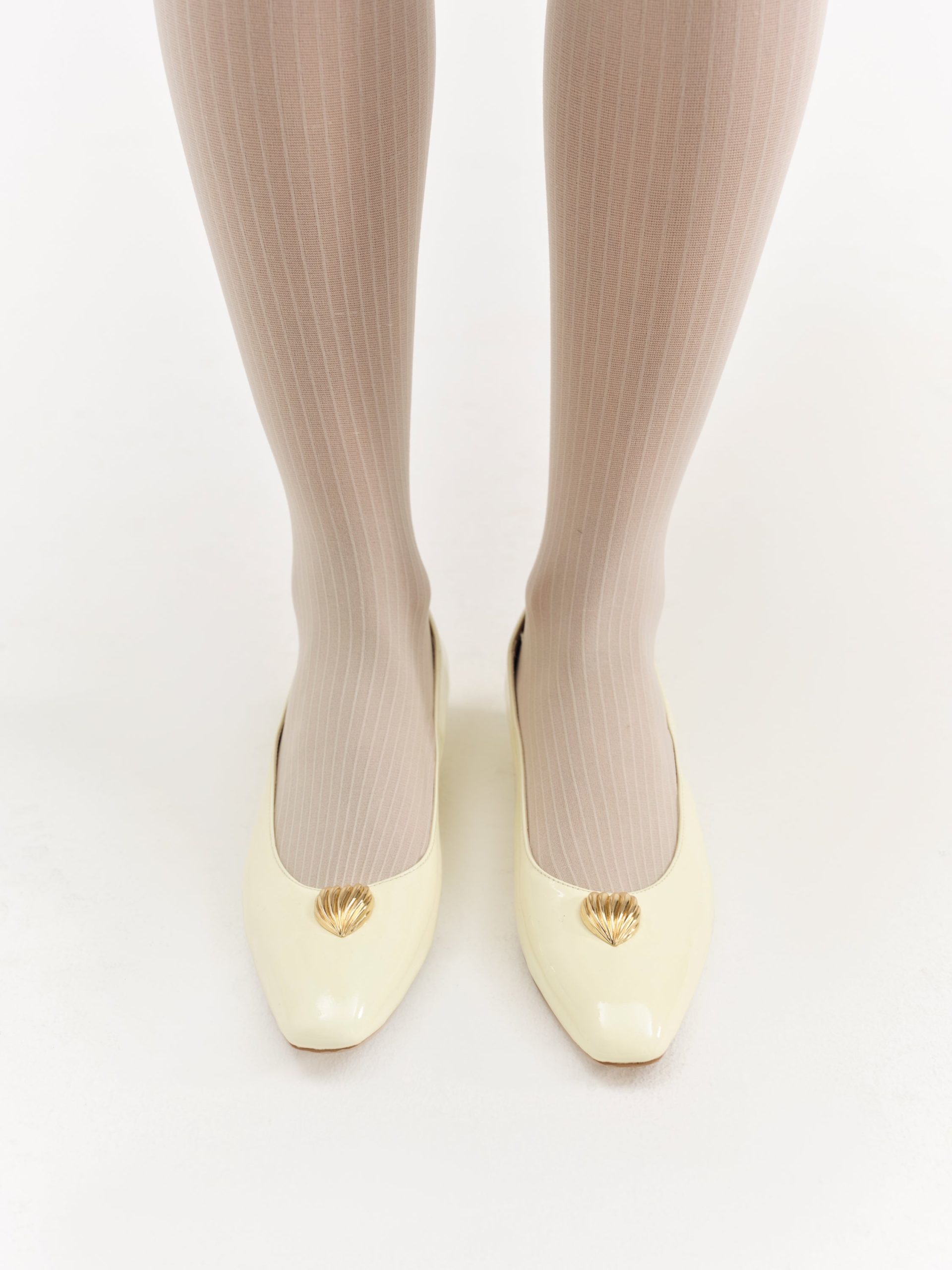 An ultra-chic style for day-to-night, the Edie cream flat is a point toe shoe adorned with a heart charm and finished in a sleek cream patent leather.