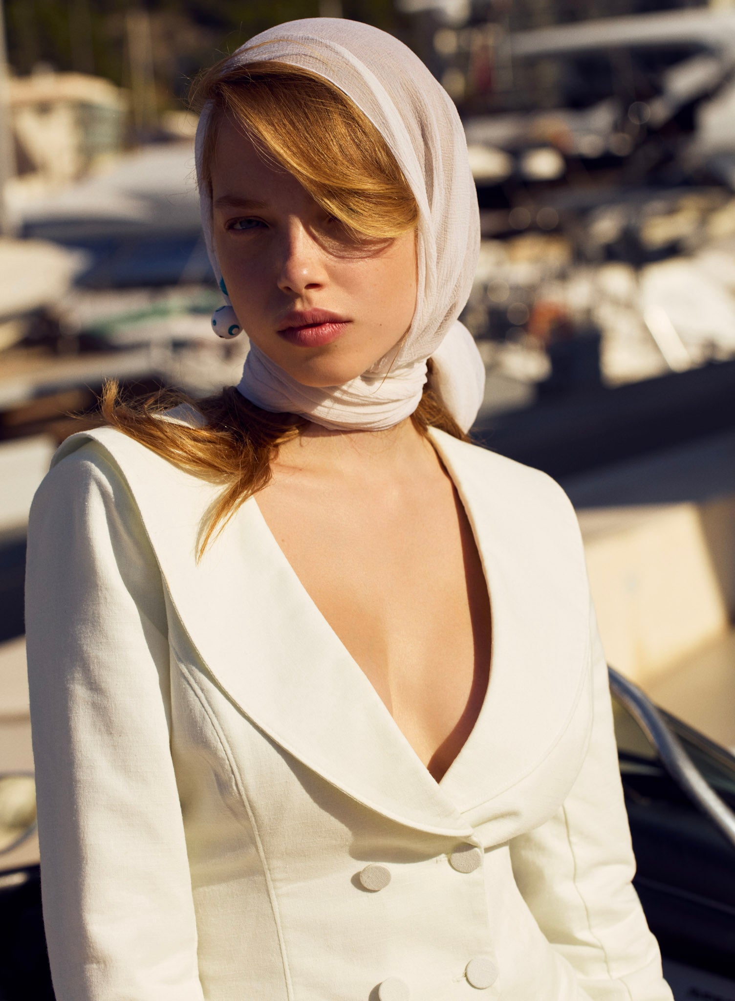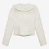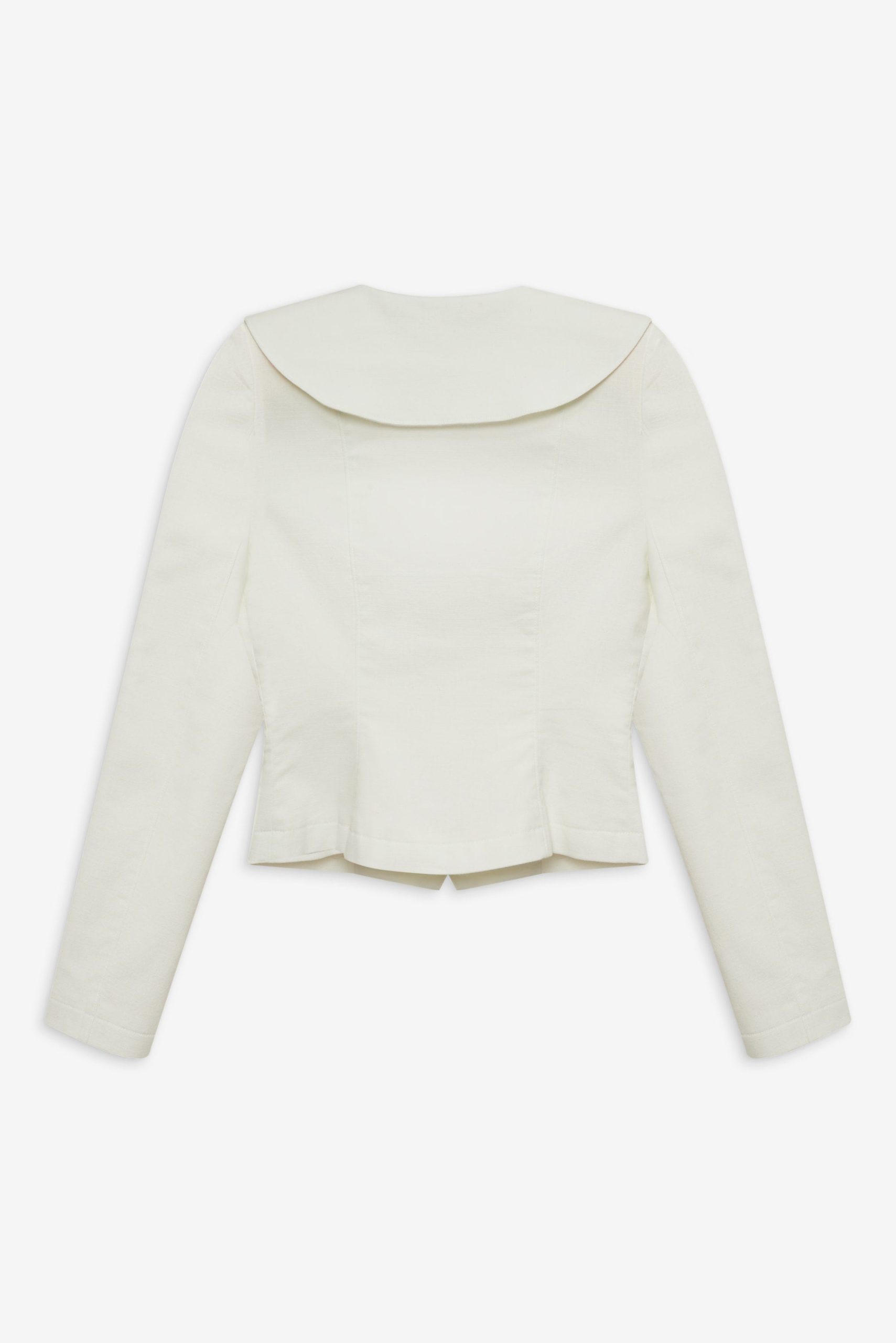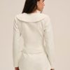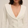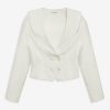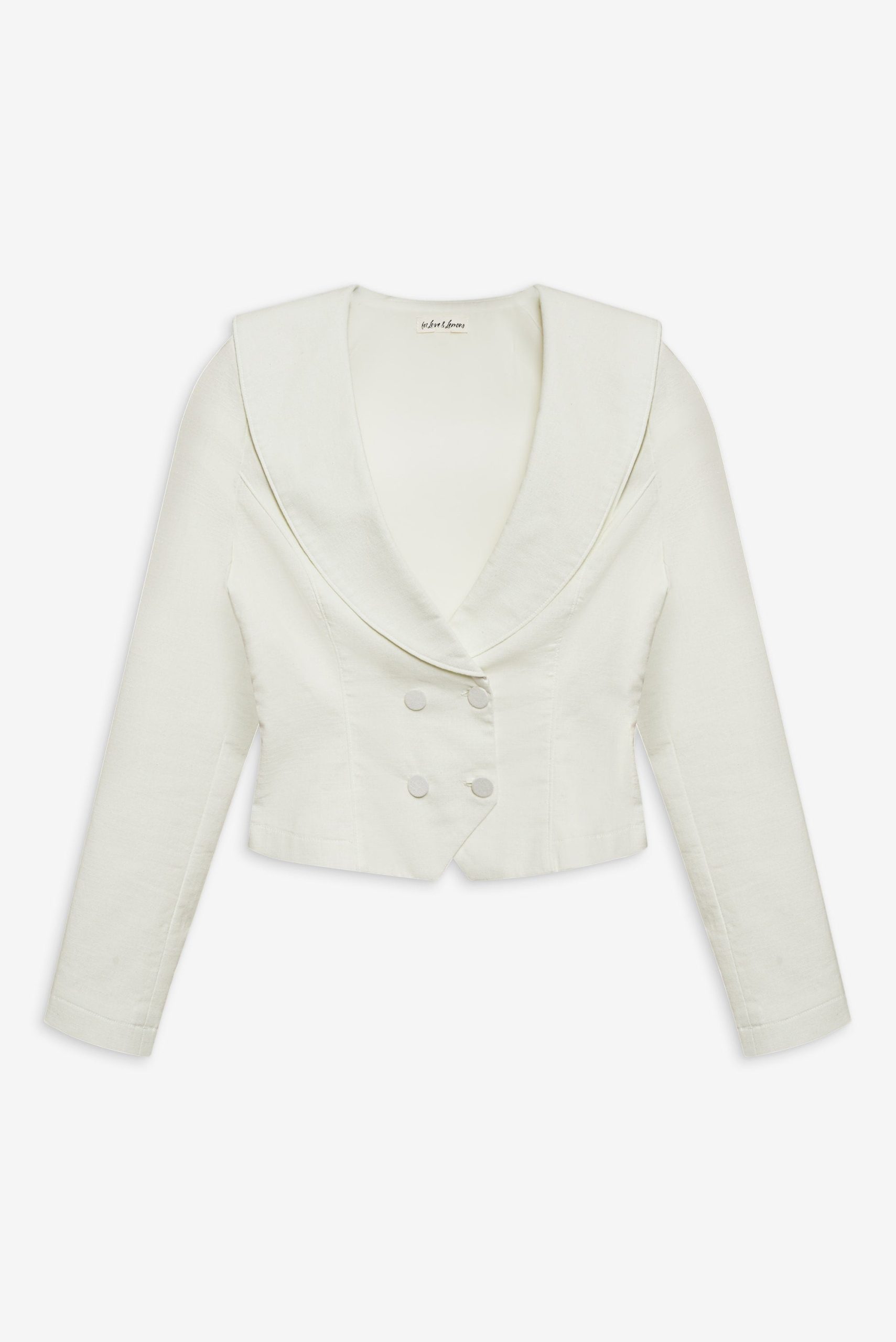 Designed to make a nostalgic statement, the Etta cream blazer exudes sophisticated charm. Crafted in a sleek linen, this cropped blazer features a double-breasted button closure at center opening, shawl collar, and a wide plunging neckline.