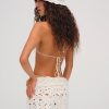 Channel retro romance with the Floral crochet mini skirt–a vintage-inspired white mini skirt crafted in an intricate 100% cotton floral crochet. This cover up skirt features a fixed scallop belt shirred into a circular belt slider at center-front.