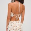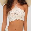 Channel retro romance with the Floral crochet cover up top–a crochet halter top crafted in an intricate 100% cotton floral crochet. This open back top features an adjustable spaghetti tie halter neck and crossing back straps.