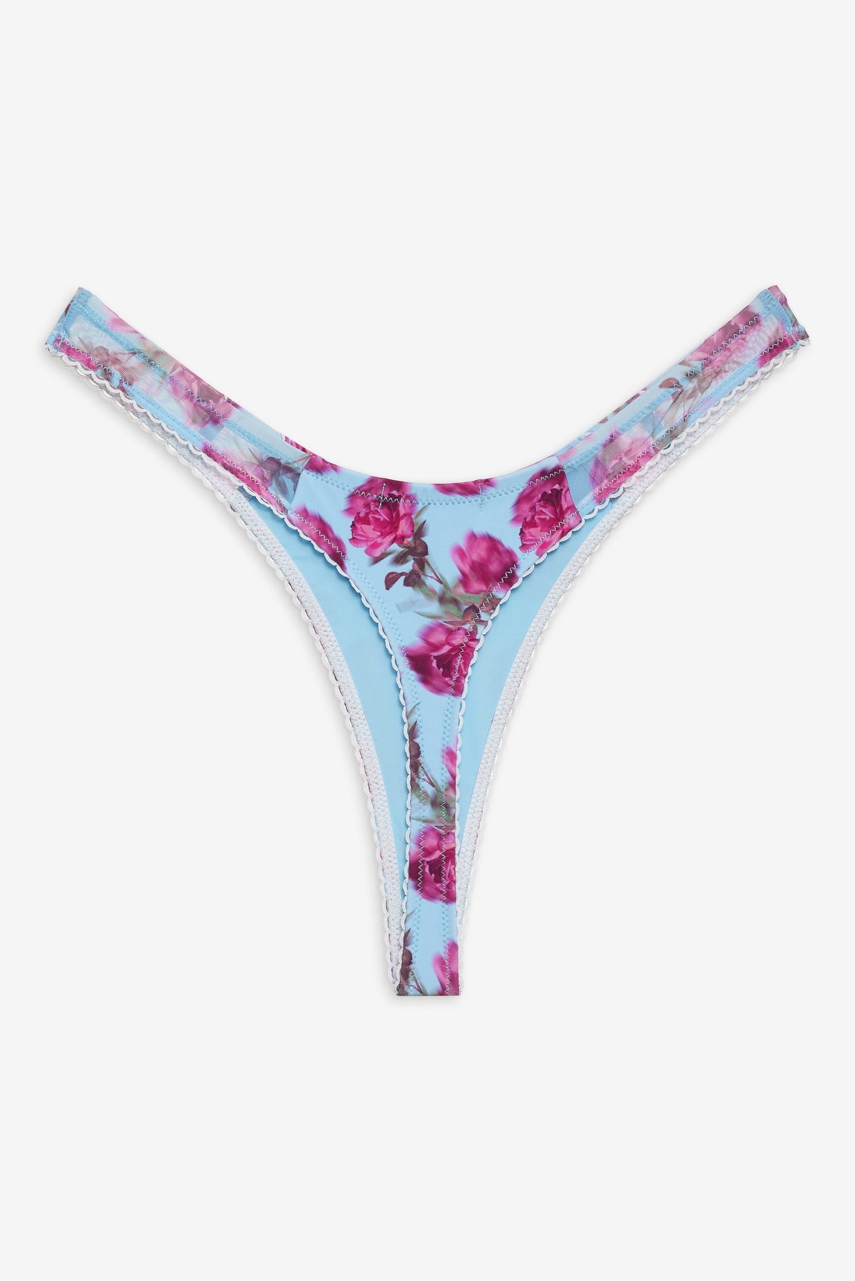 Soak up the sun in the Floral Stems ruffle bikini bottom–a cheeky bikini bottom rendered in a floral printed knit with mesh ruffles and dainty rosette appliqué. Pair it with the Floral Stems Ruffle Tankini for the full bikini set.