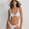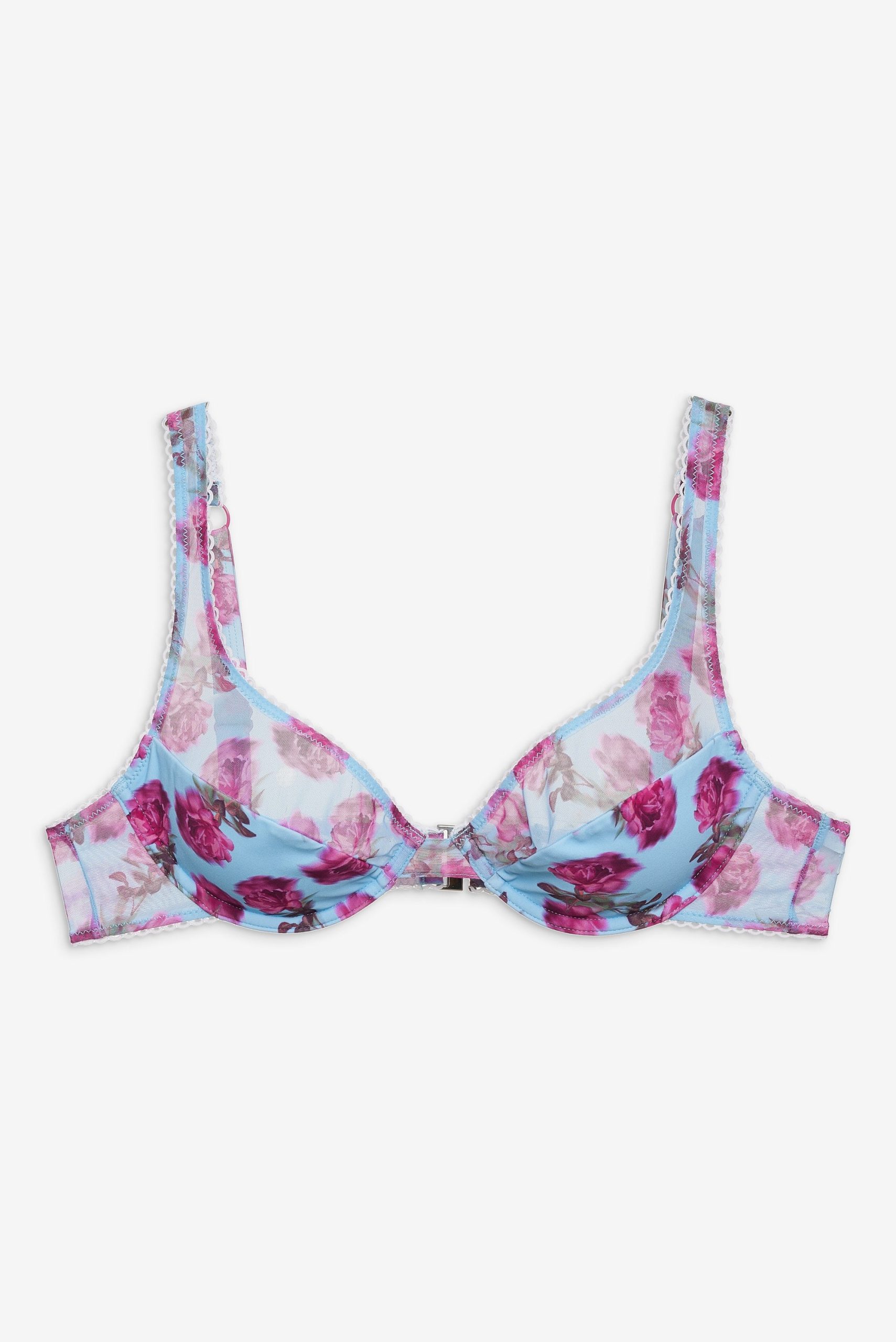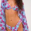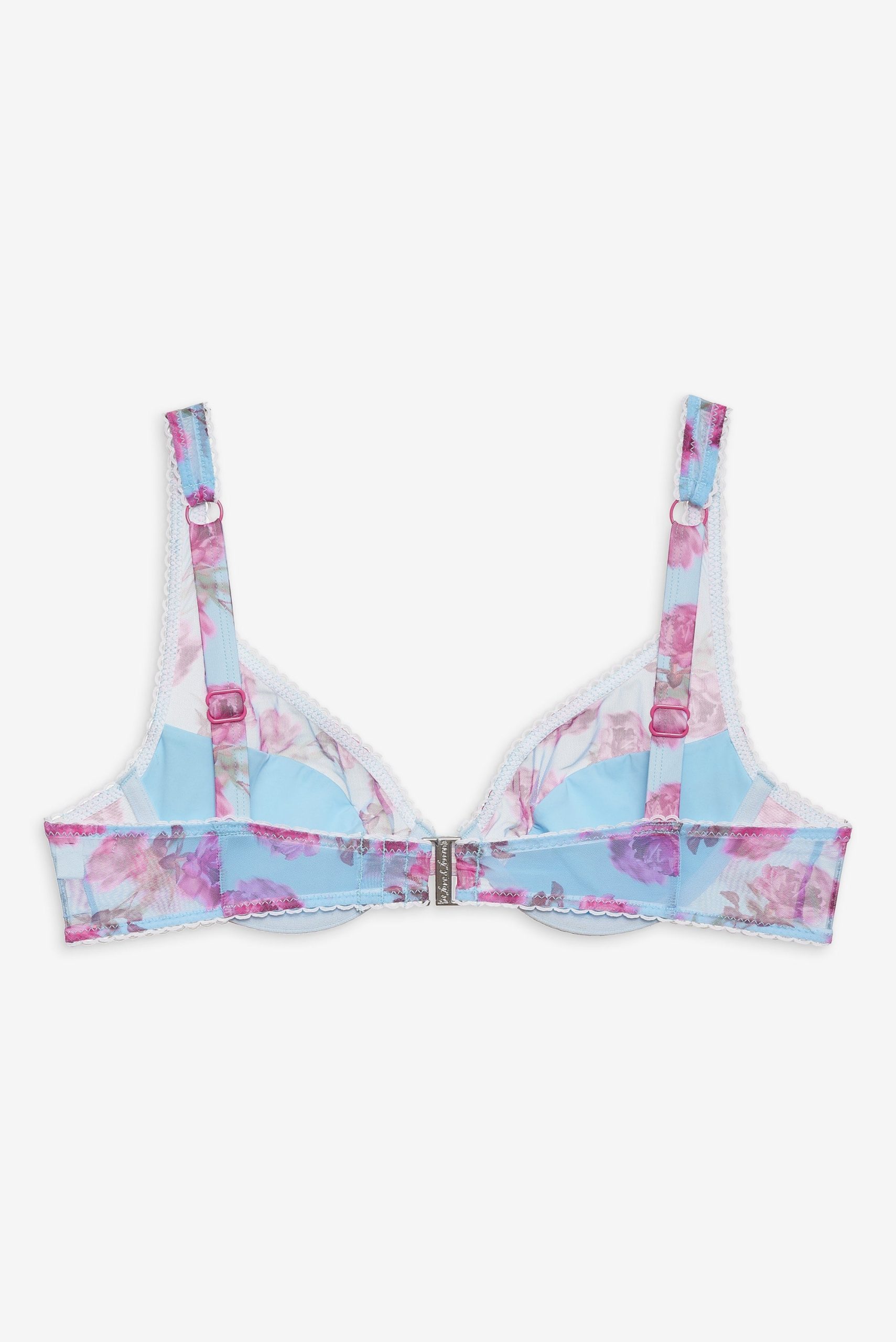 Soak up the sun in the Floral Stems blue underwire bikini top–a ruffle bikini top crafted in a floral printed knit with mesh panels, and dainty loop elastic trim. Pair it with the Floral Stems Bikini Bottom for the full bikini set.