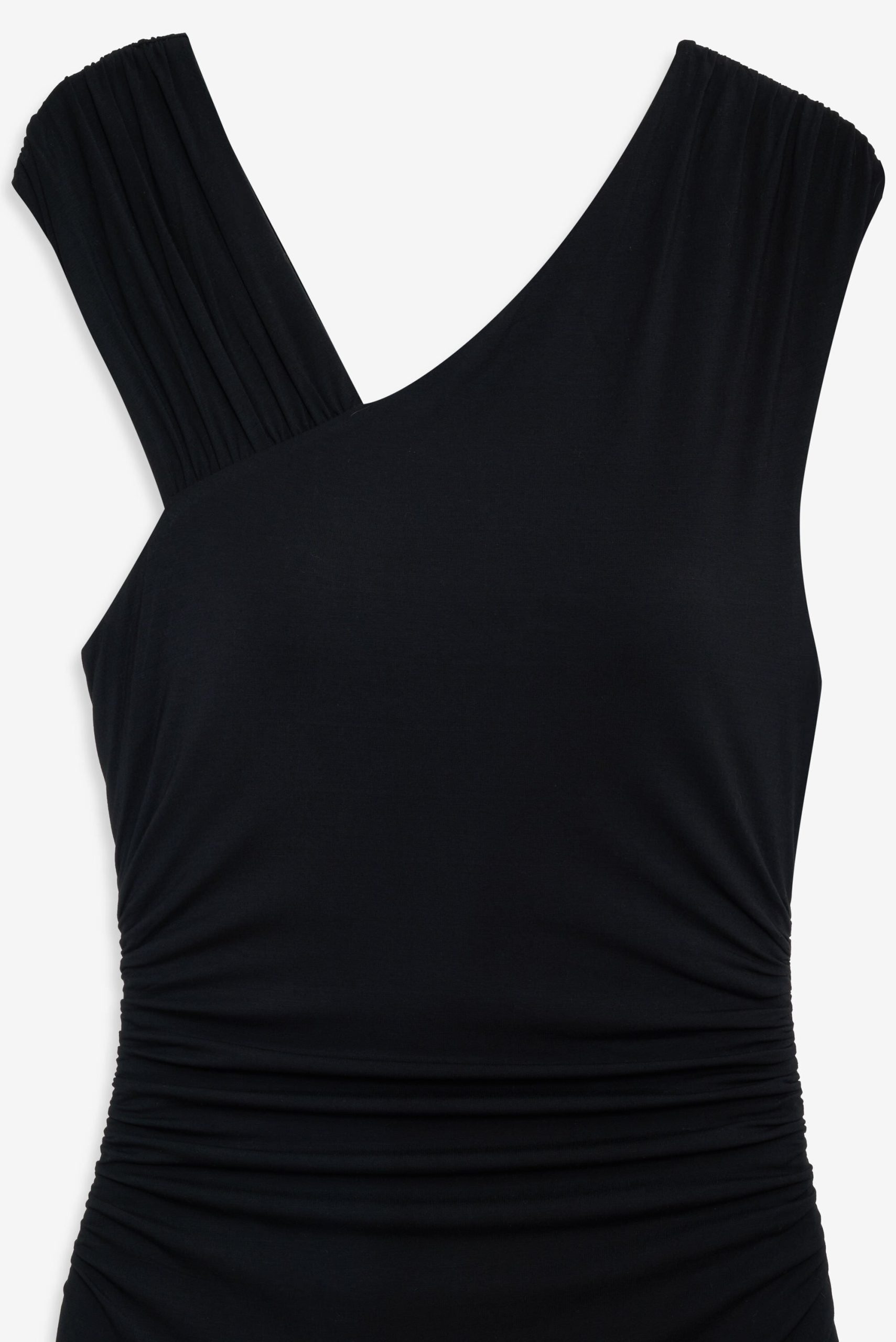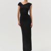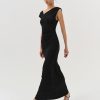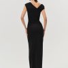Effortless, elevated, and unmistakably cool—the Genesis black maxi dress is crafted in a stretch jersey for a draped aesthetic. This asymmetrical dress features an off-the-shoulder neckline, bodycon fit, and ruching throughout.