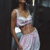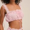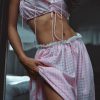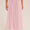 Feminine, romantic, and designed for the outdoor Muse—the Ginny gingham midi skirt is perfect for sun-drenched days. Crafted in a nostalgic gingham, this pink midi skirt is adorned with lace trims at the hem and the waist.
