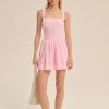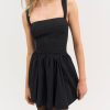 For late summer and the early days of fall, the Ginny gingham mini dress is the perfect staple for transitioning seasons. This black fit and flare mini dress features a full gathered skirt and scalloped details at the drop waist.