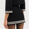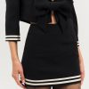 Embrace sailor girl fall with the Josie micro skirt—a high-waisted black mini skirt crafted in a suiting fabric with nautical inspired contrast grosgrain ribbon. Pair this pencil skirt with the Josie Blazer to complete the set.