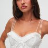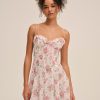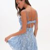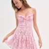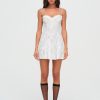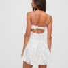 For a short dress that exudes elegance and femininity, look no further than the Kate white mini dress—crafted in dreamy embroidered organza. This little white dress features underwire cups, a pleated skirt, and a seductive low-cut open back.