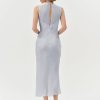 A classic silhouette reimagined—the Madalie midi slip dress is crafted in a lightweight jacquard and chiffon for a feminine look and feel. This bias cut dress spotlights lace trimmed ruched cups and a functional chiffon bow at the front neckline.