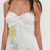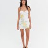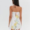 Designed for sun soaked days and the warmest golden hours, the Millie yellow mini dress is crafted in a silky satin and features oversized watercolor roses that echo the ripples of summer tides. This short slip dress has a ruched twist-front bodice and slightly flared skirt for a flattering, wear-everywhere fit.