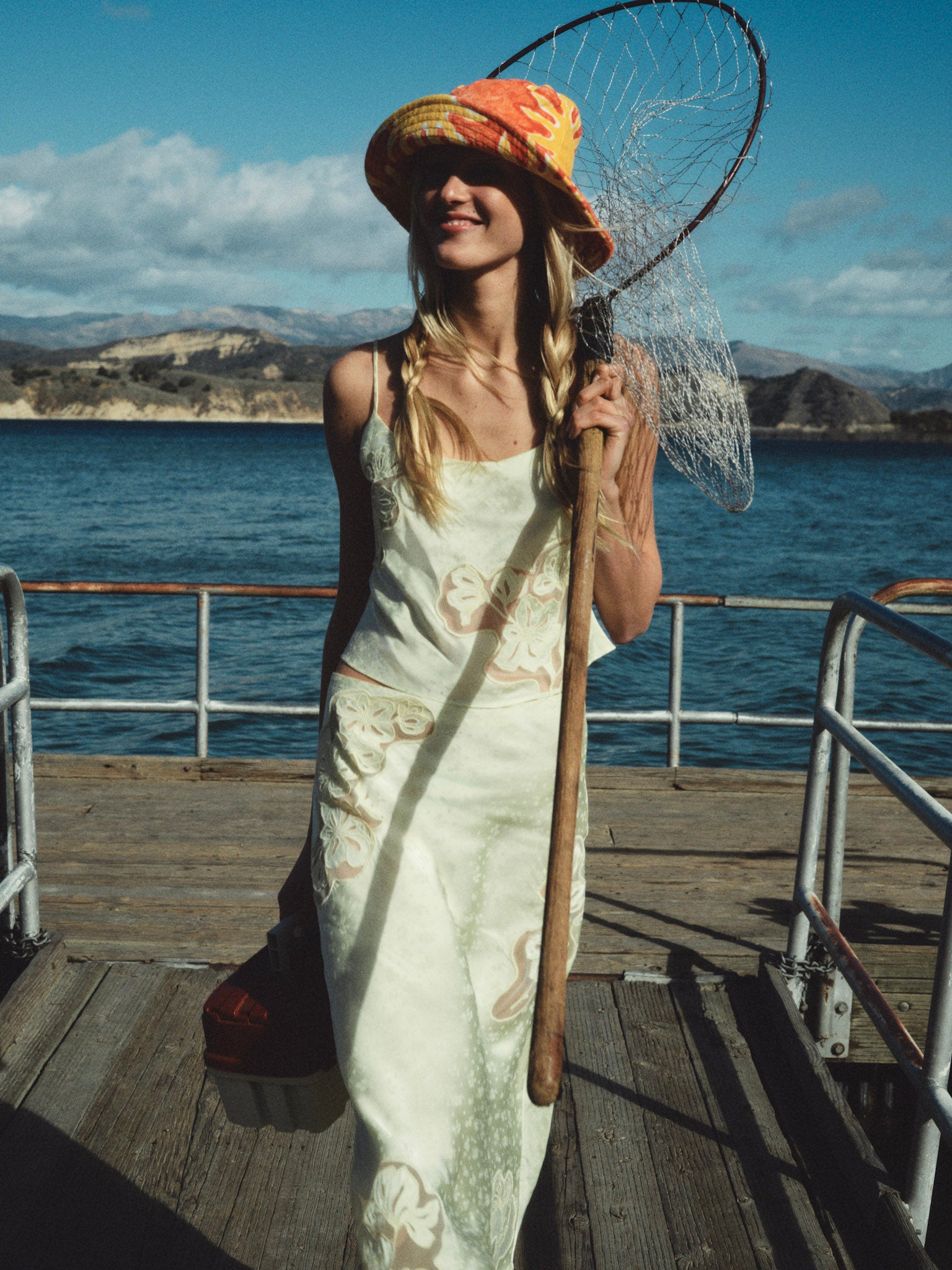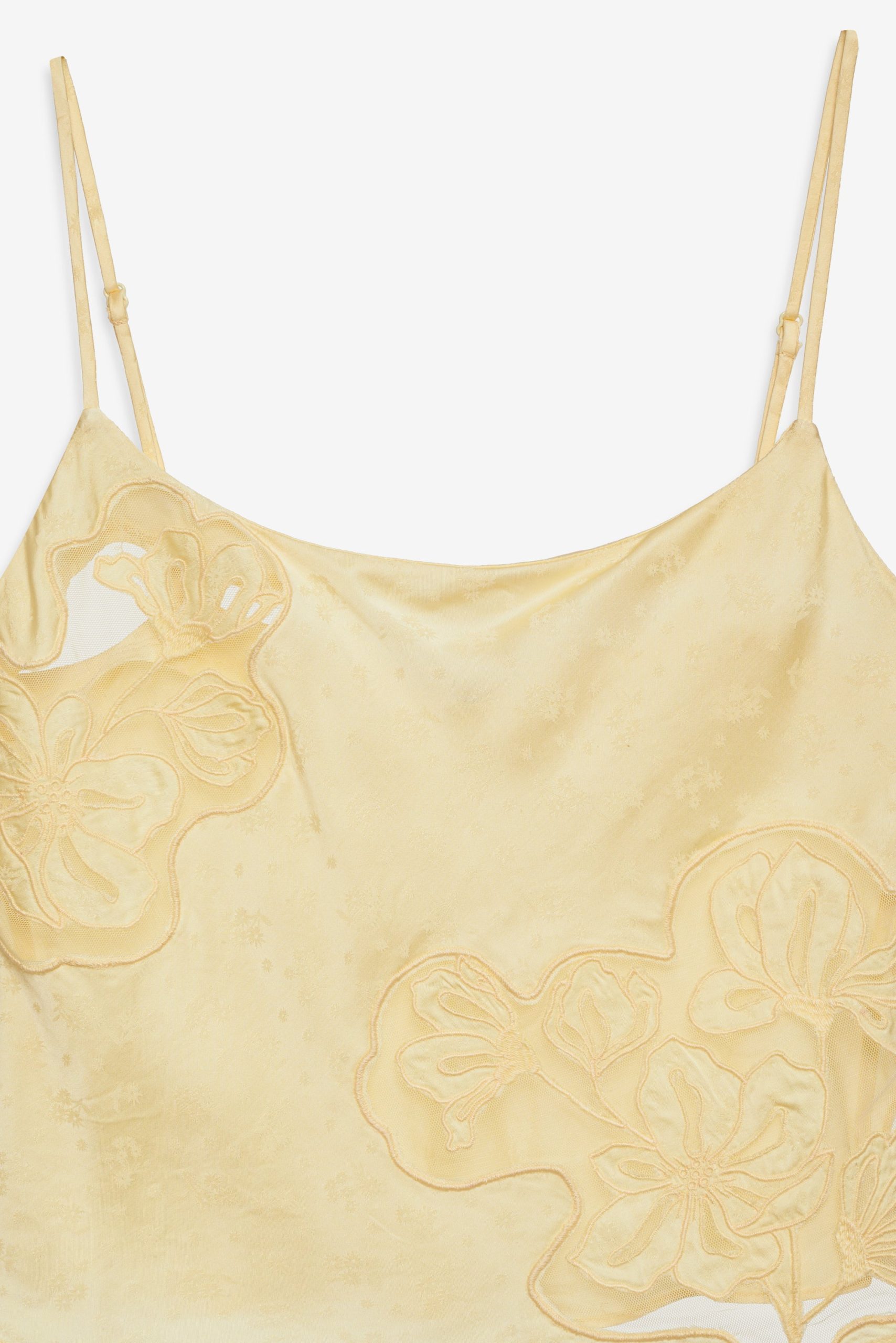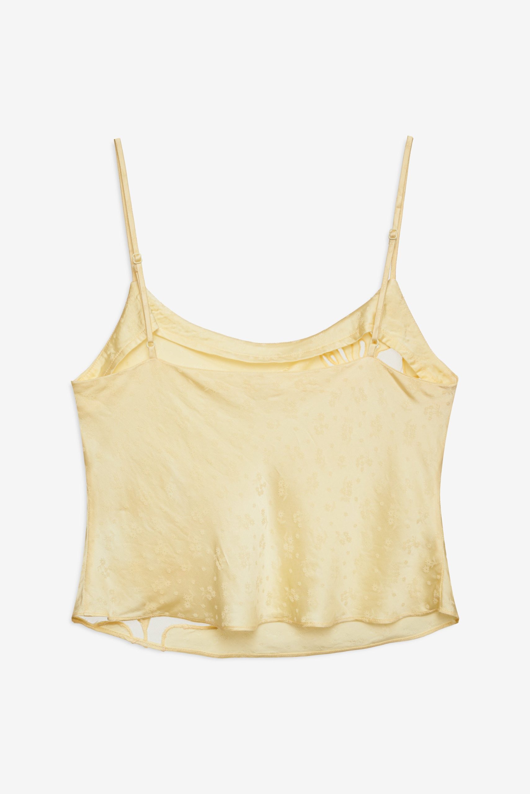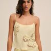 Featured in butter yellow—the hue of the summer—the Sunrise yellow tank top is cut to an effortless ’90s silhouette with inset appliqués. Wear this satin top to drinks at golden hour.