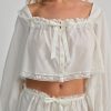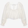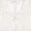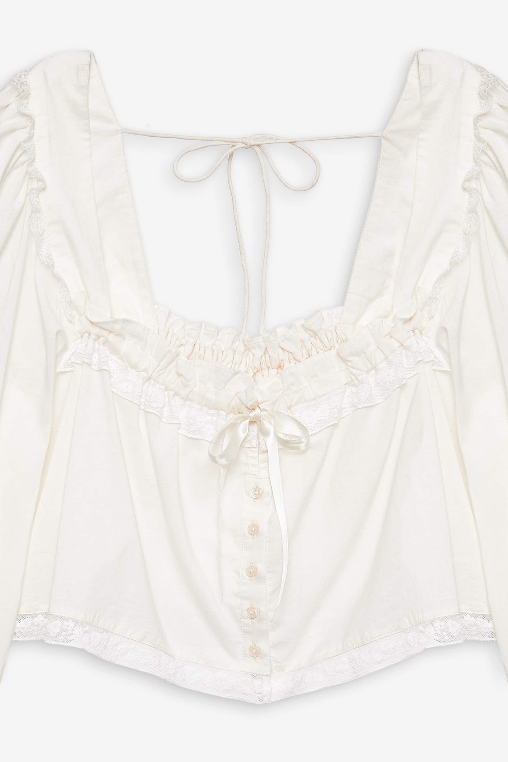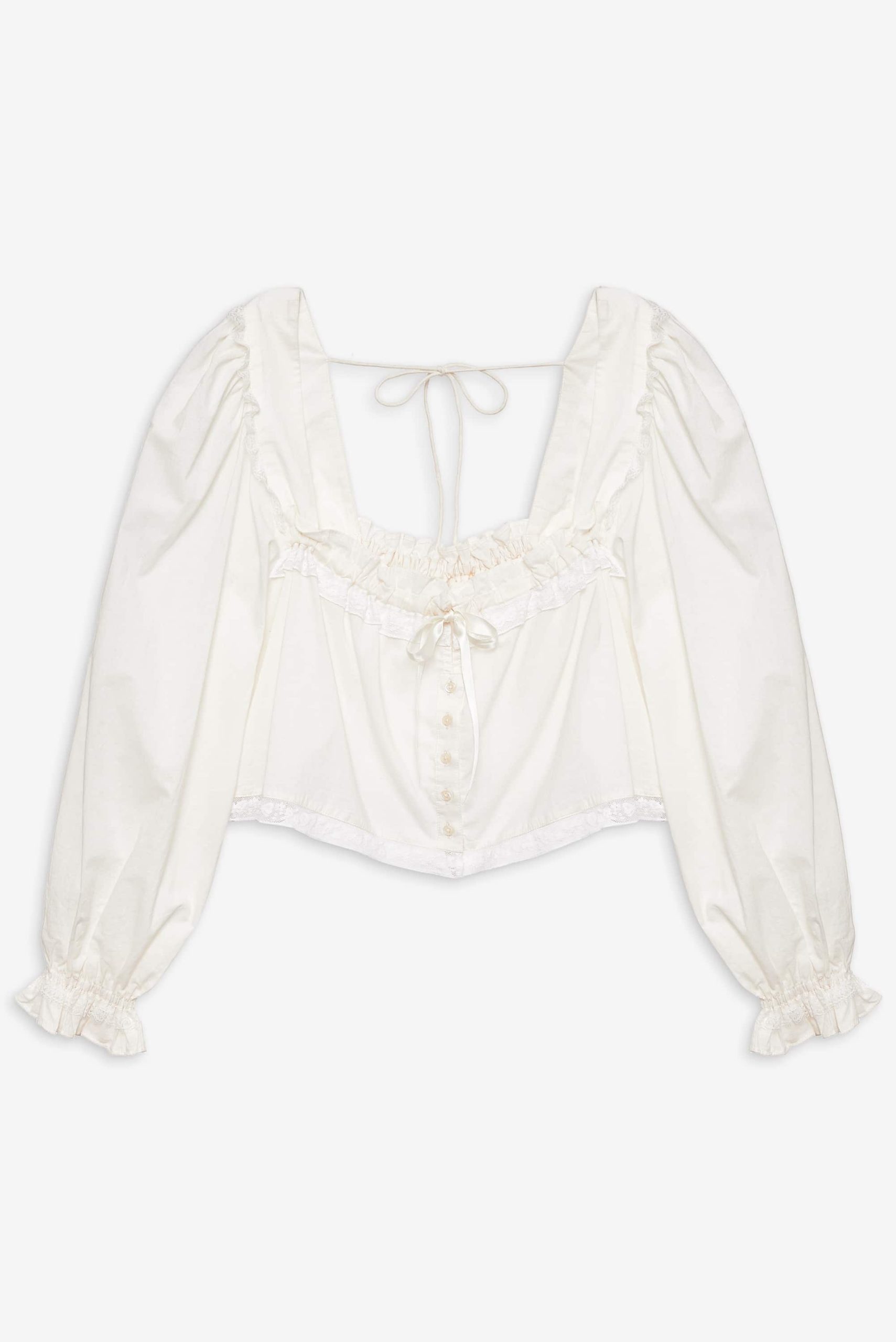 For wearing in and out of the house, the Venetia white long sleeve top is too chic to save only for sleep. This 100% cotton pajama top features long puff sleeves, functional front placket, lace trims throughout and a center-front bow. Pair it with the Venetia Sleep Short for a co-ord pajama set.