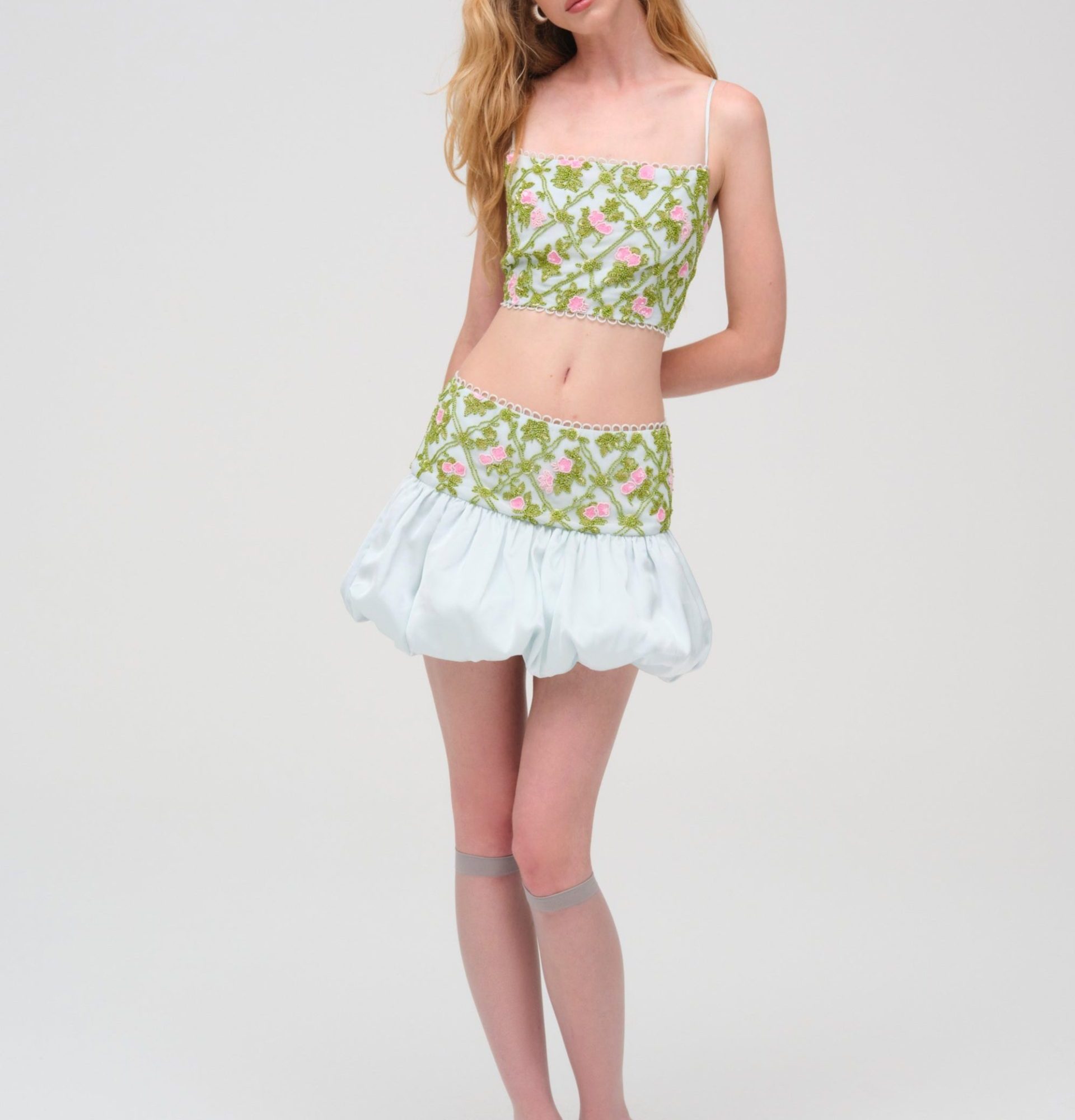 blushing blooms skirt white