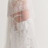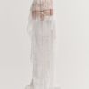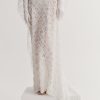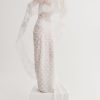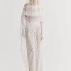 For your eternal romance, look no further than the Arabella white bridal gown—a simple, strapless silhouette with enchanting lace and diamond rosettes. With a subtle train at the back and included satin bow gloves—this strapless wedding gown is a look to remember.