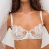 Designed for a picture perfect honeymoon, the Blushing Blooms underwire bra exudes a divine romance. Crafted in a sheer floral embroidered mesh, this white bra is detailed with decorative elastic trims and bow appliqués.