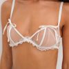 Dreamy lingerie designed for the ethereal bride, the Bridal Ruffled lace bra was made for a fairytale-like romance. This ethereal white lingerie bra is crafted in delicate crystal tulle and adorned with lace slotted ribbon trim, ruffled elastic, and decorative bow appliqués.