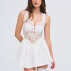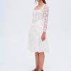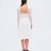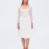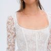 Introducing the Camdyn white midi dress, crafted in elegant lace for timeless appeal. Featuring a wide scoop neckline, this lace dress is adorned with delicate lace ruffles, boning at the bodice, and three-quarter exposed lace sleeves.