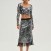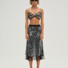 The Christelle black midi skirt is designed to transport you to a stardust covered dance floor. Cut to a high waist, this sequin skirt spotlights an elegant tulle under layer that hangs elegantly below the hem. Style it with the Christelle Bra Top for a statement co-ord set.