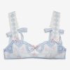 Capture the delicate charm of a festival romance with the Dainty Doily sheer bralette–a blue bralette crafted in a sheer floral and doily heart embroidered mesh. Featuring eyelet gingham ribbon trim straps and adjustable gingham bows at back straps, this lace bralette is adorned with dainty bow appliqués throughout.