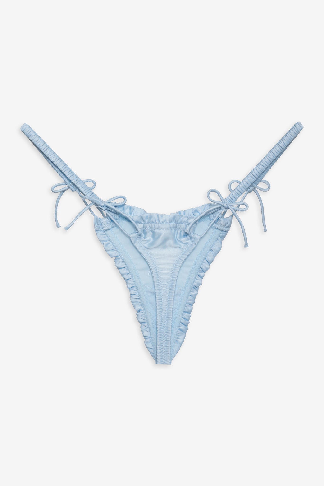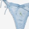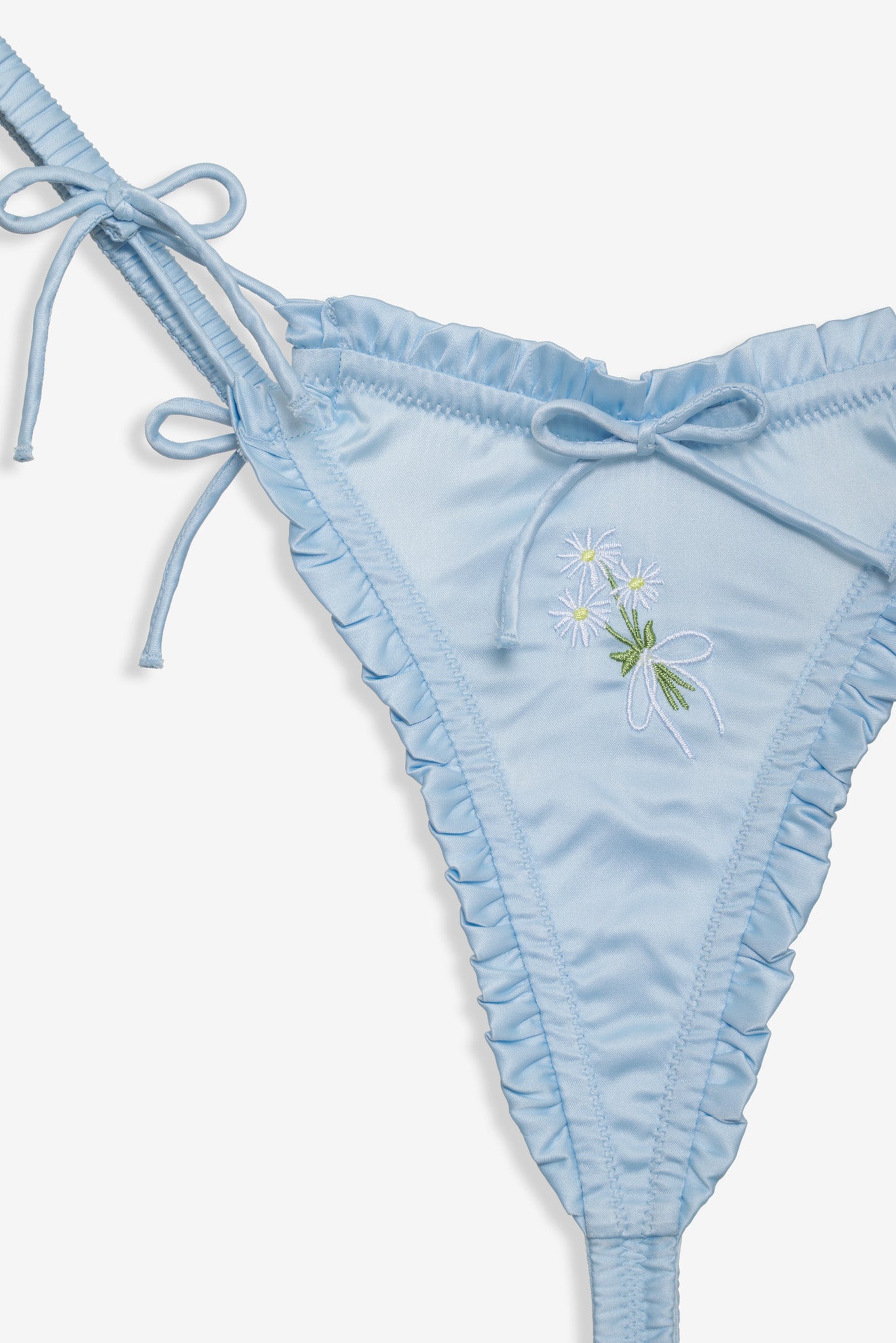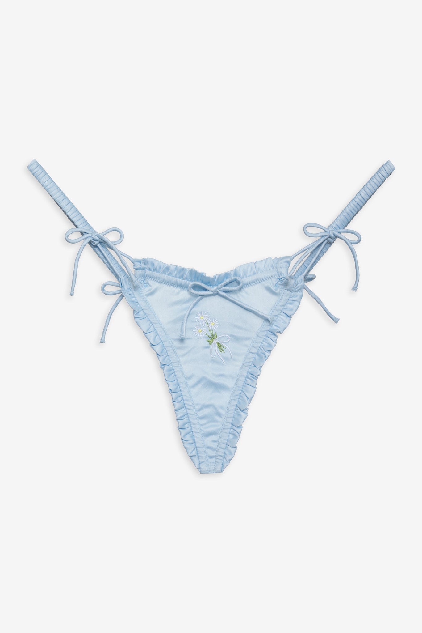 A bestselling silhouette—the Everyday blue thong highlights the beauty of everyday rituals. This thong underwear is accentuated with romantic floral bouquet embroidery and skinny tie bows. Pair it with the Everyday Bralette for a chic and effortless lingerie set.