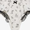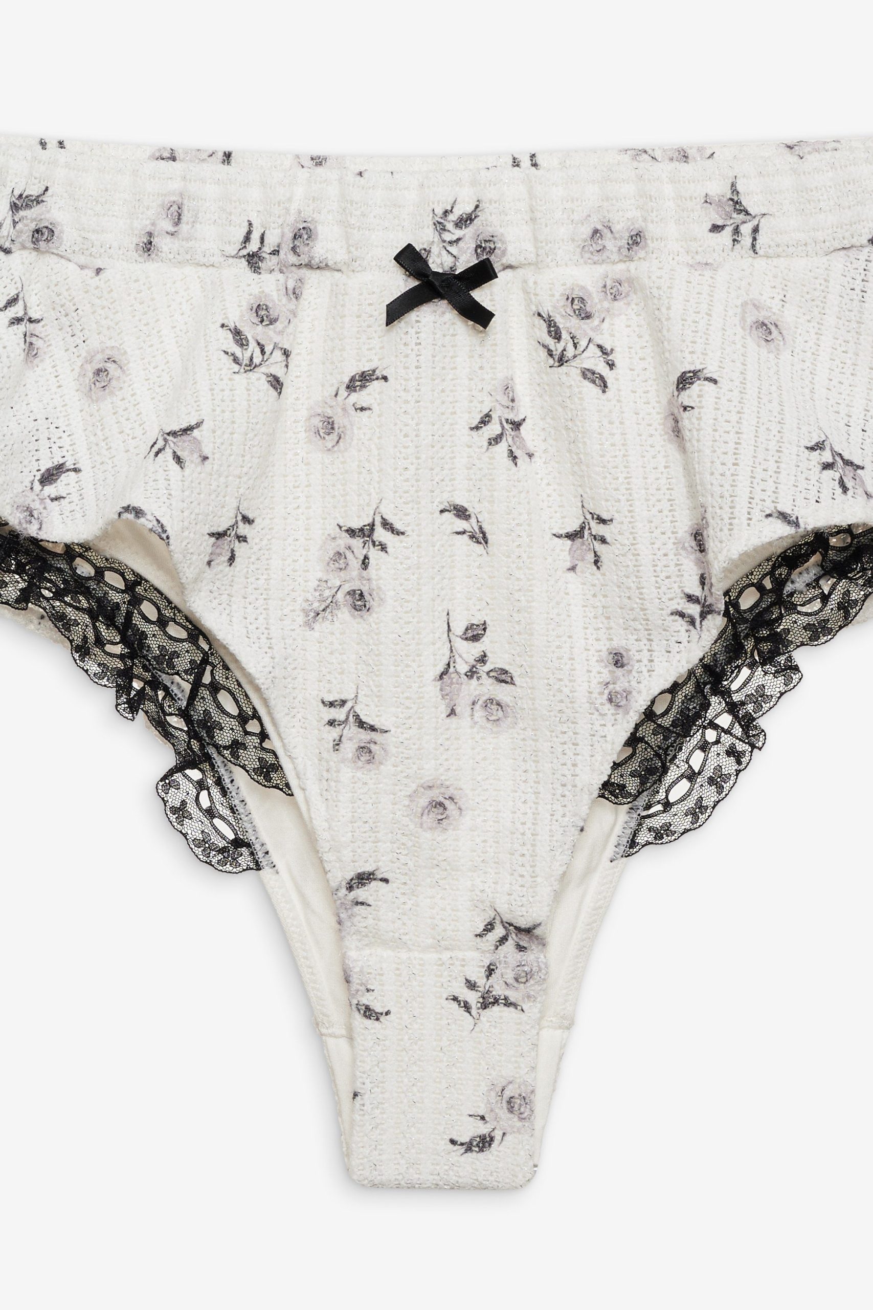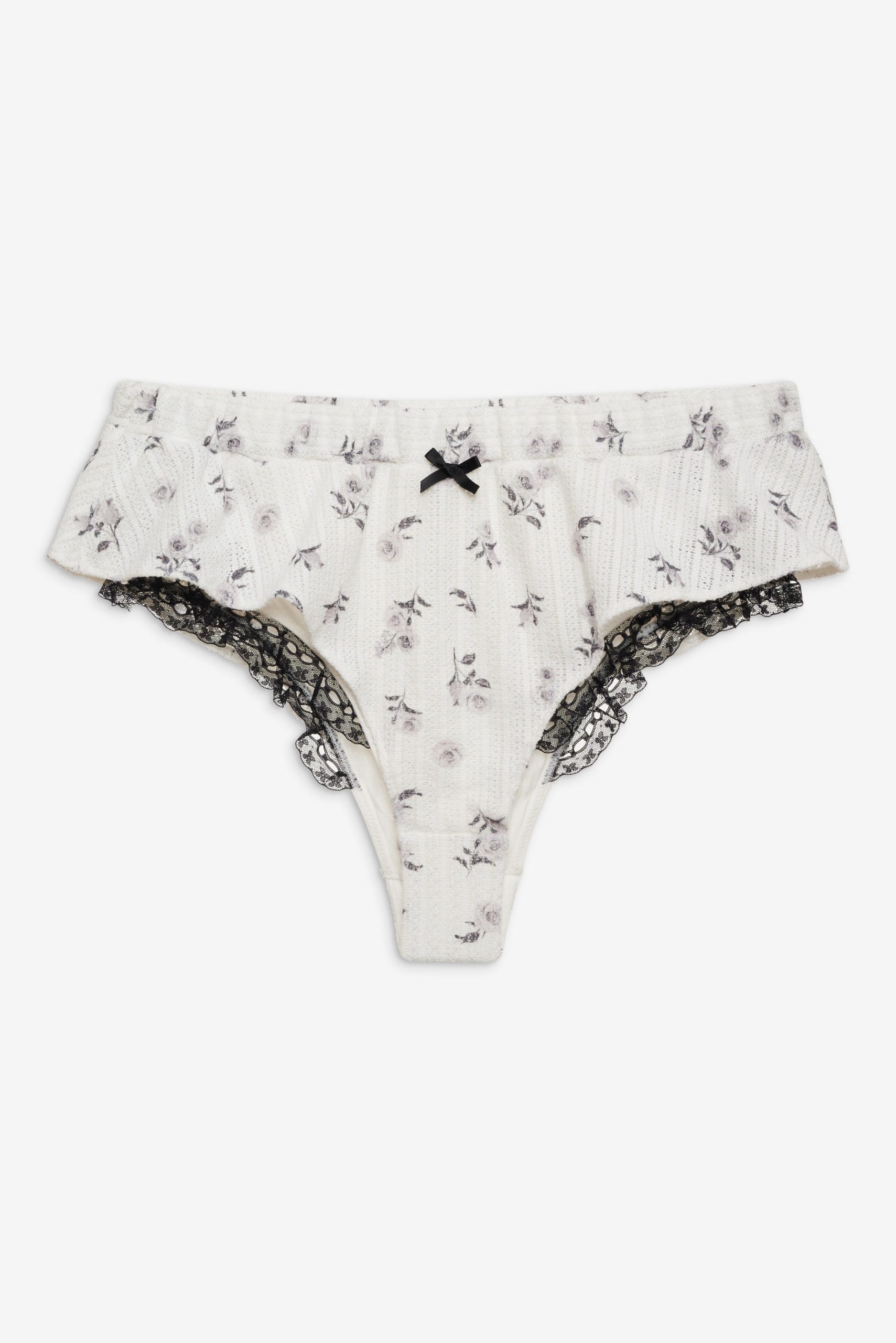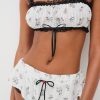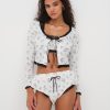 Crafted in a soft rose-printed pointelle knit, the Fawn white pajama shorts exude a sense of romance. Featuing a satin bow trim and lace that peeks out underneath the lining, these cheeky micro shorts are perfect for lounging around the home. Complete your holiday pajama set with the matching Fawn Bralette and Fawn Cardigan.