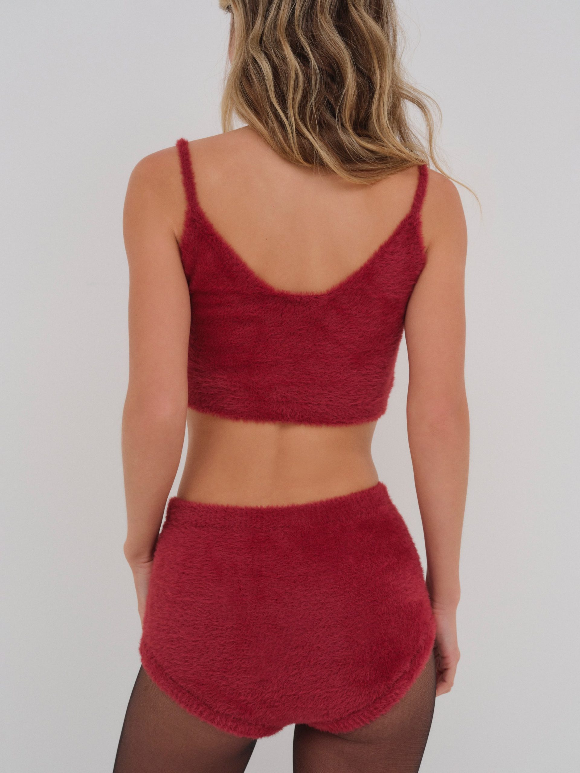 Perfect for crisp, cozy days at home—the Fiona red crop top is crafted in a fuzzy mohair knit for extra warmth. Featuring a scooped neckline, this knit tank top can be paired with the matching Fiona Cardigan and Knit short for a chic loungewear set.