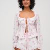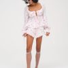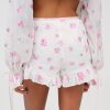 Designed for a seaside romance, the Fiona floral micro shorts charm with an ultra-romantic dainty floral print. These high-waisted flowy shorts are adorned with ruffled leg openings, satin ribbons, and a decorative bow at center-front.