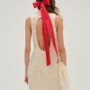 Cut to a ’90s shift dress silhouette—the Frosted Organza cream mini dress is crafted in a striking textured fabric with a square neckline. This minimalist party dress is decorated with an oversized soft tulle bow at the hip for a feminine, coquette aesthetic.