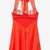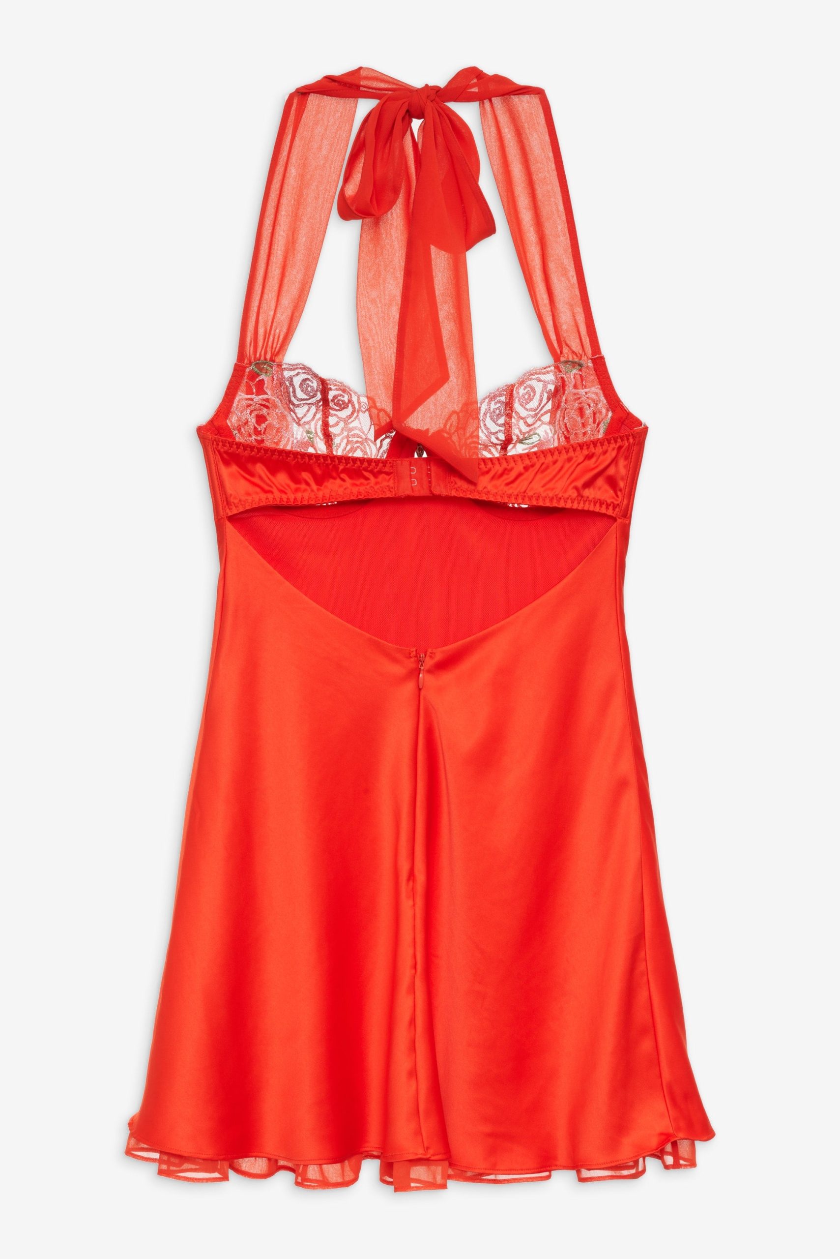 Embrace the magic of the festive season with the ultra-sexy Gene red slip dress. Featuring rose-embroidered underwire cups with a touch of lurex sparkle, this mini negligee spotlights shirred chiffon straps and a ruffled lining that peeks out just below the hem.