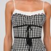 The Georgia gingham midi dress exudes the timeless spirit of coastal Americana with its charmingly nostalgic gingham fabrication. This sleeveless drop waist midi dress features a contrast gathered neckline and is adorned with contrast trims and ribbons.