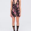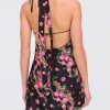 Imagined for the modern woman who revels in the joy of an impromptu weekend getaway—the Justice black halter dress is crafted in a satin and spotlights a beautiful rose print. This mini dress is cut to an A-line silhouette and has ruched cups.