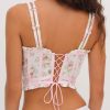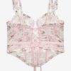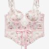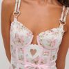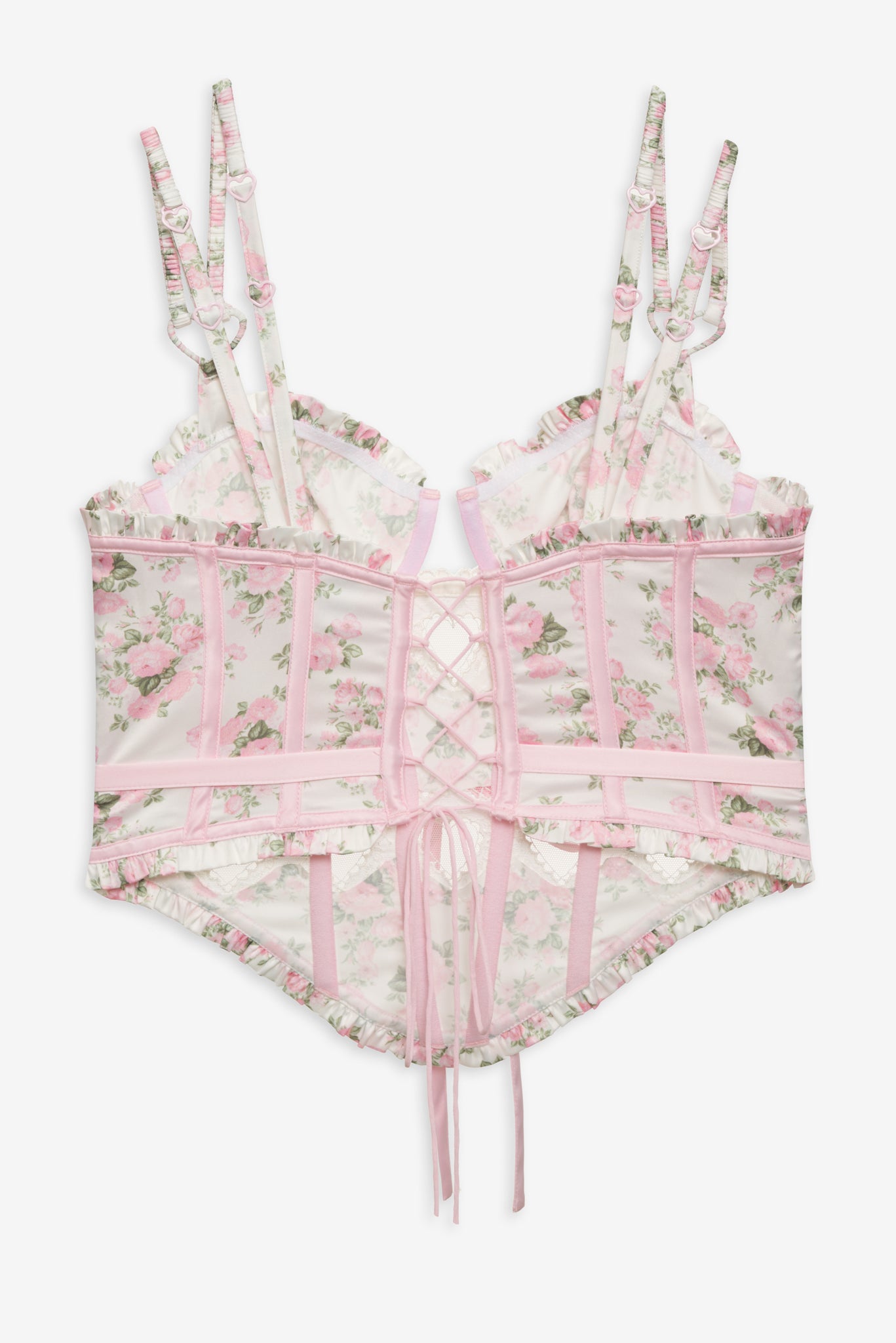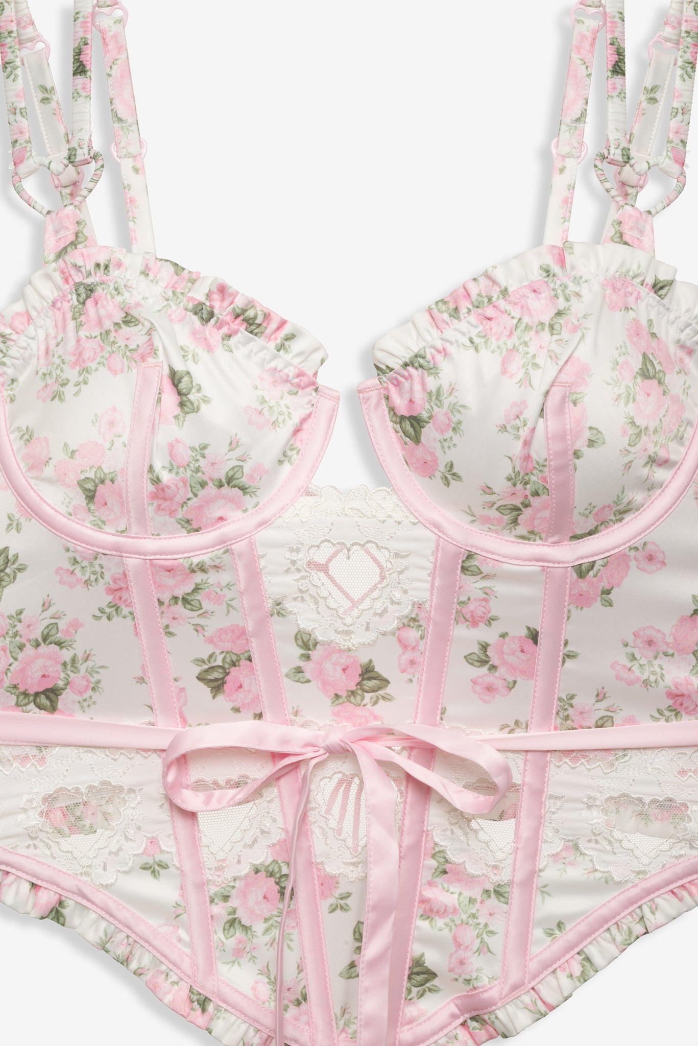 Introducing the nostalgia-infused bustier top from our Naima collection—an ode to good old-fashioned romance. This floral lingerie is cut in a romantic rose-printed fabric, features heart detailing and delicate lace trims, plus a ribbon bow that ties up at the front.