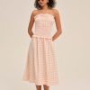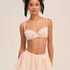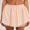 The Petal gingham mini skort was made for warm beach days, lakeside lounging, and everything in between. Crafted in a nostalgic peach gingham, this high-waisted micro skirt features built-in bloomer shorts and is adorned with lace trims.