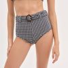 Made for sunlit boardwalks and salty air, the Gingham swim short exudes vintage charm. Crafted in a navy and white puckered gingham, this high-waisted swim bottom features a functional removable belt and a shirred cheeky back panty.