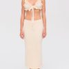 Crafted in a chunky chenille rib knit, this cream midi skirt spotlights elegant knit ruffles at the hem, exuding an air of romance. Pair this elegant knit skirt with the matching Rey Knit Bralette for a cozy co ord skirt set.