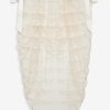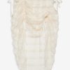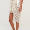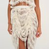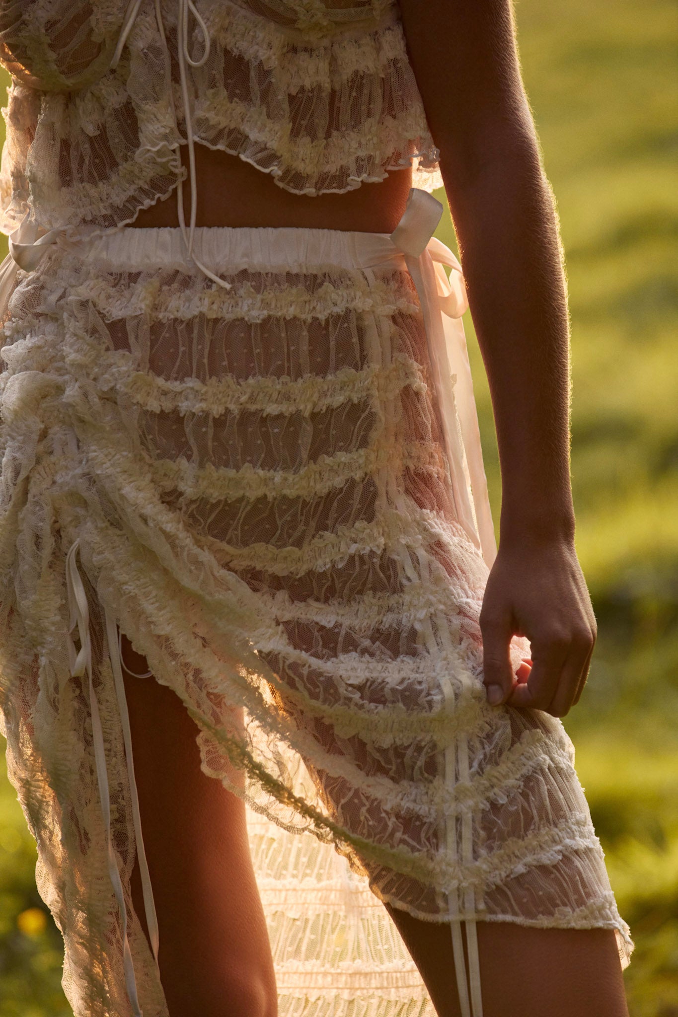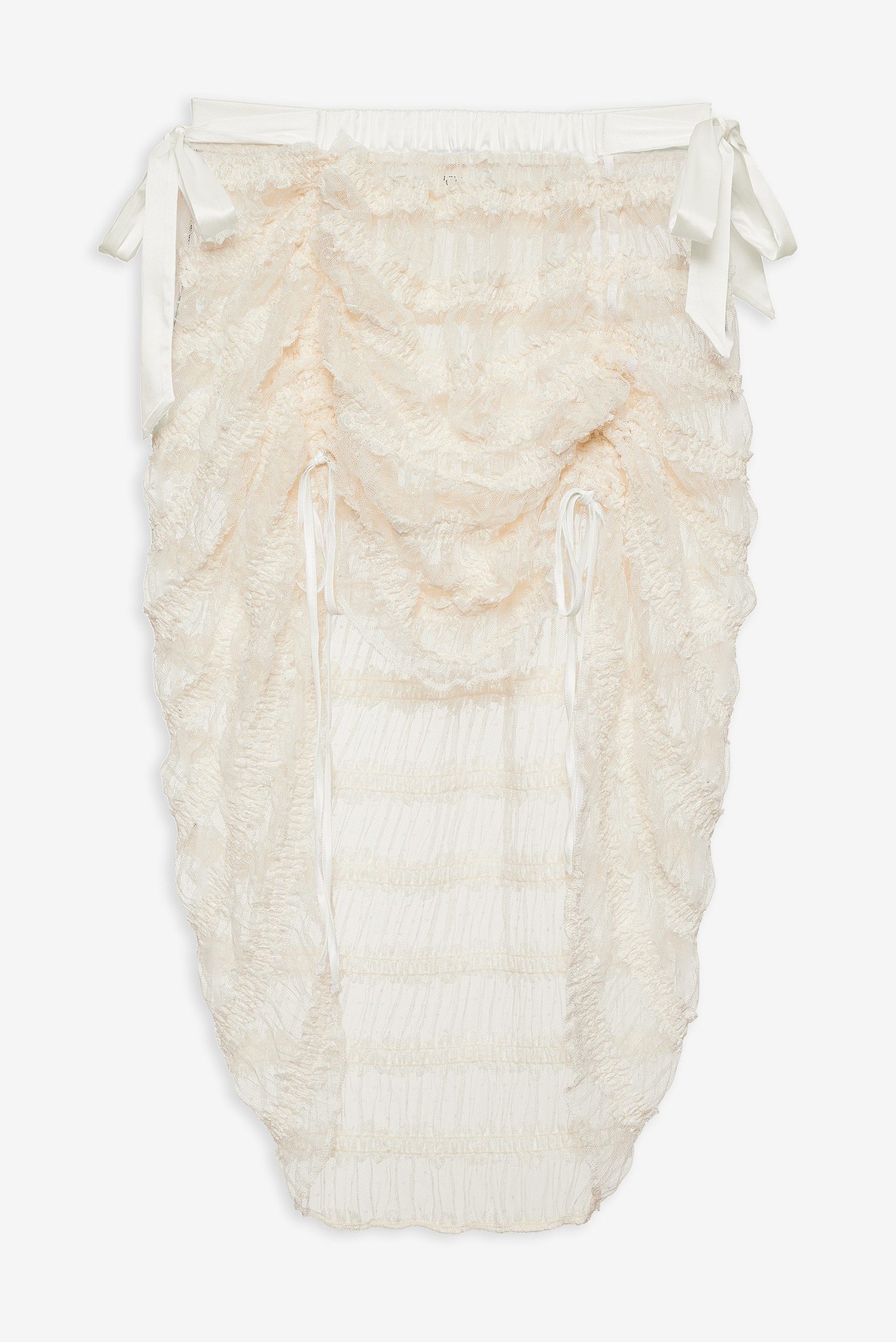 Get into the festival spirit with the Romy slip skirt–a high-waisted sheer skirt adorned with contrast satin ties at the side seams. Designed for slow desert days, this white midi skirt features ruffles and functional drawstring ties at the front princess points for adjustable length.
